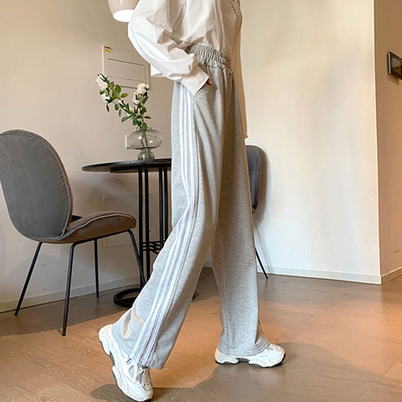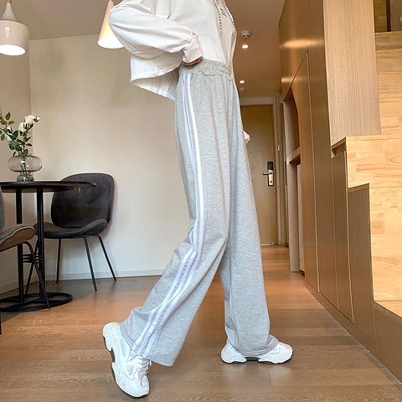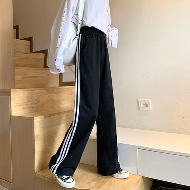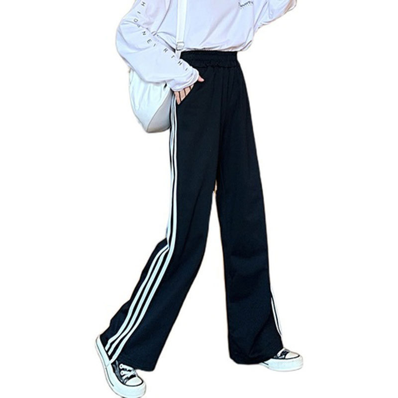 【涤纶鱼鳞 】新款春秋三条杠阔腿裤子高腰宽松运动休闲裤女