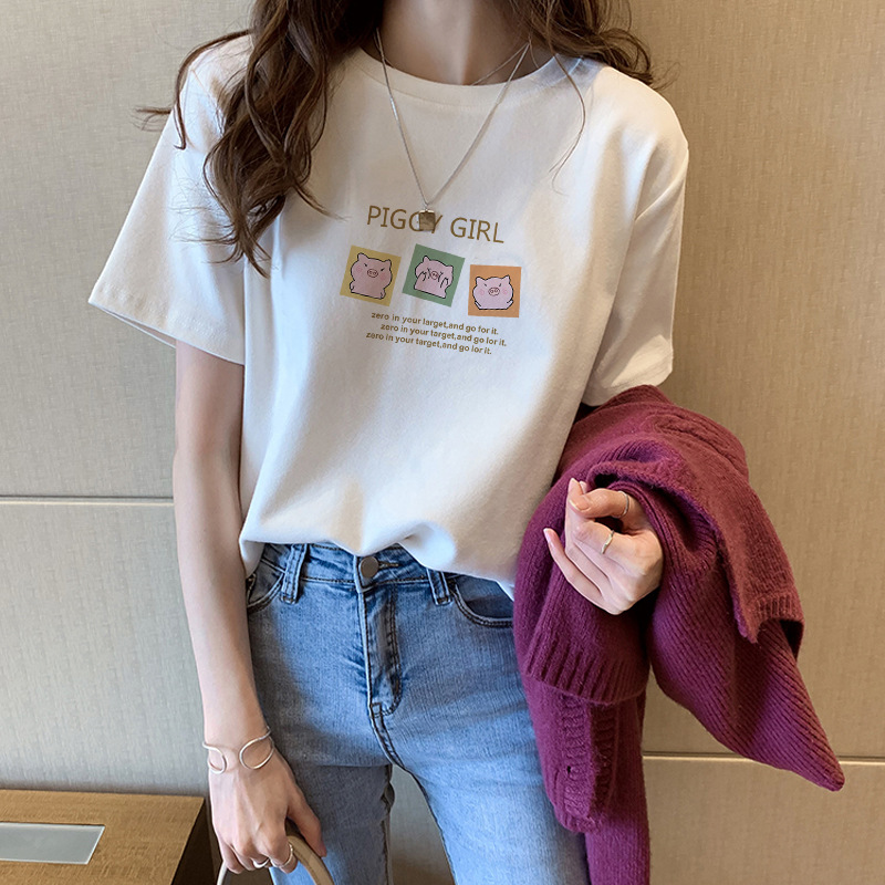 纯棉短袖T恤女宽松韩版夏季新款学生百搭半袖体桖上衣服ins