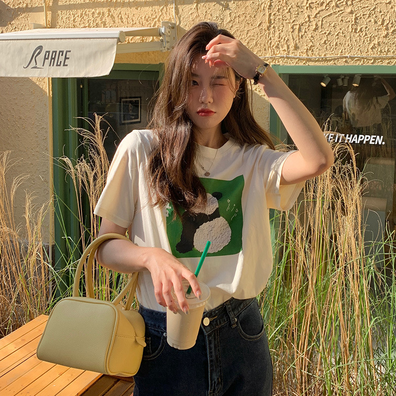 原宿风卡通印花圆领正肩短袖T恤夏宽松显瘦韩版新款学生上衣