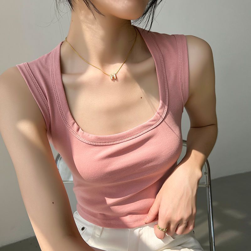 粉红色宽肩吊带背心女内搭时尚洋气时髦短款上衣新款打底辣妹外穿