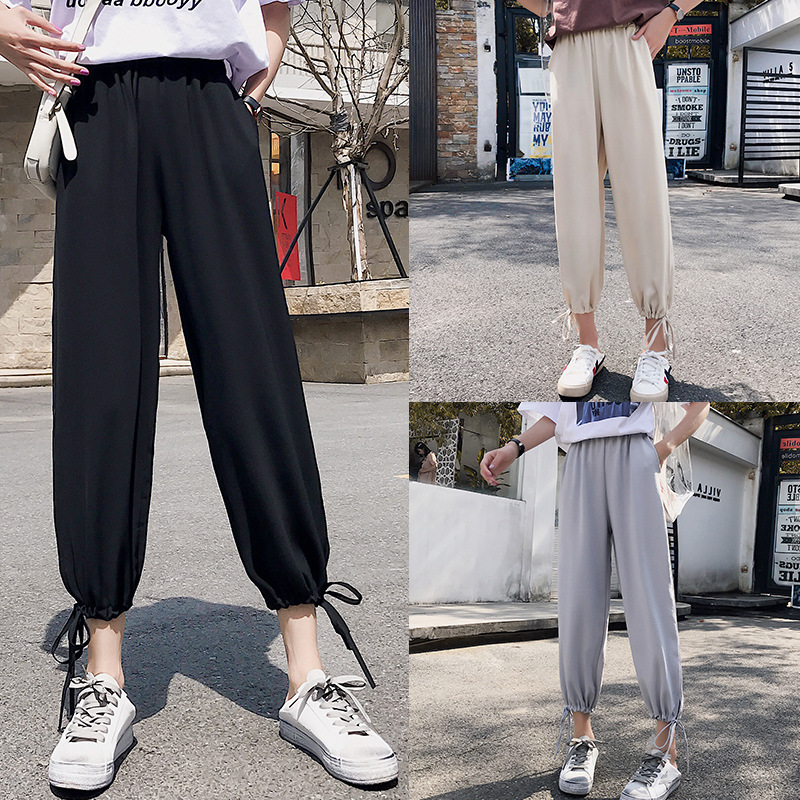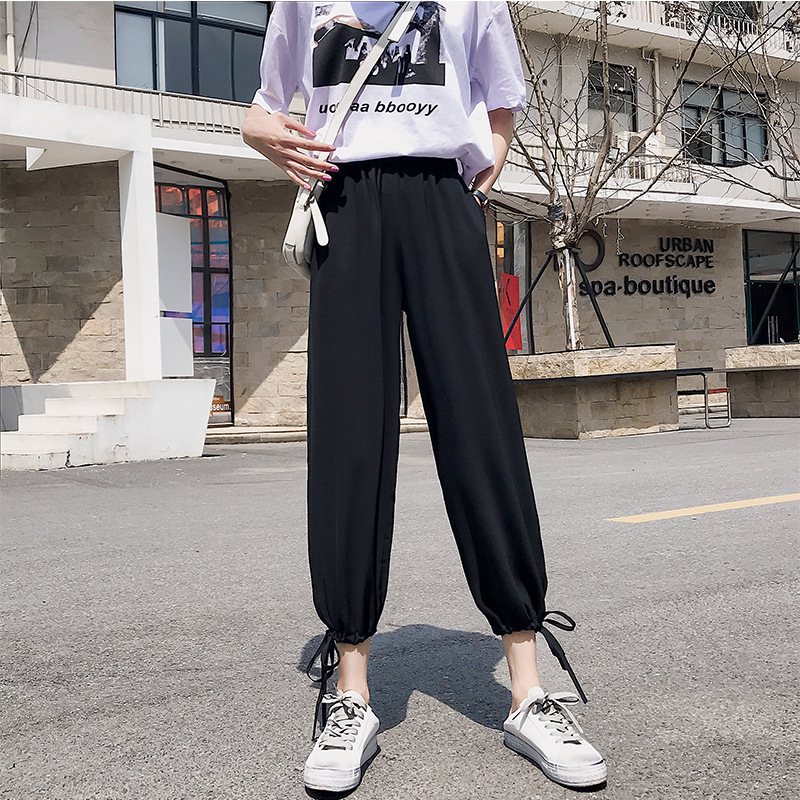 阔腿裤女高腰垂感新款九分夏季灯笼裤薄款七分萝卜雪纺纱哈伦裤子