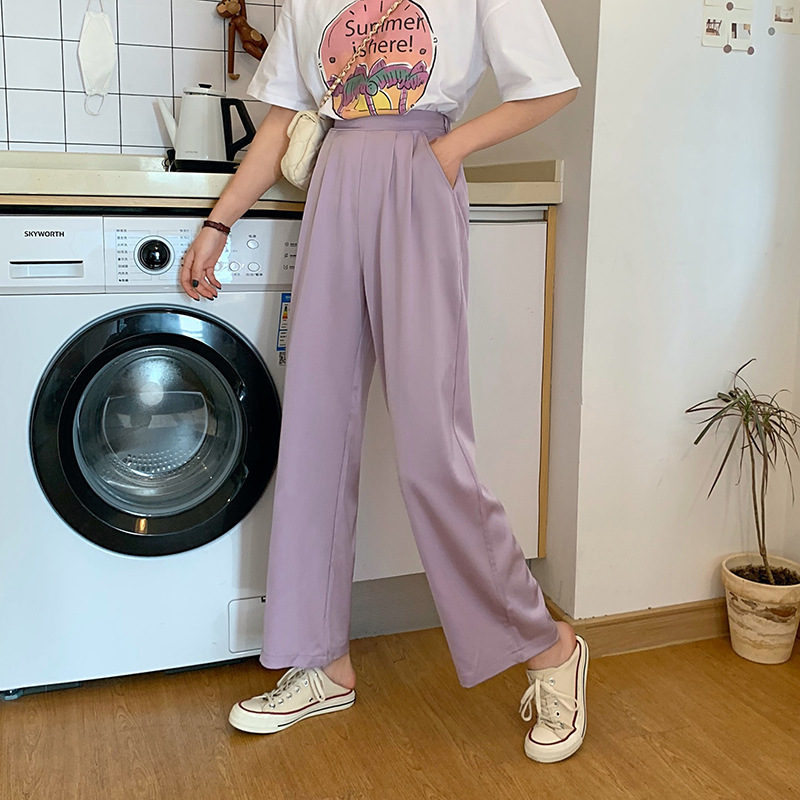 休闲裤女夏季宽松垂感裤子高腰直筒阔腿裤时尚大码西装裤长裤