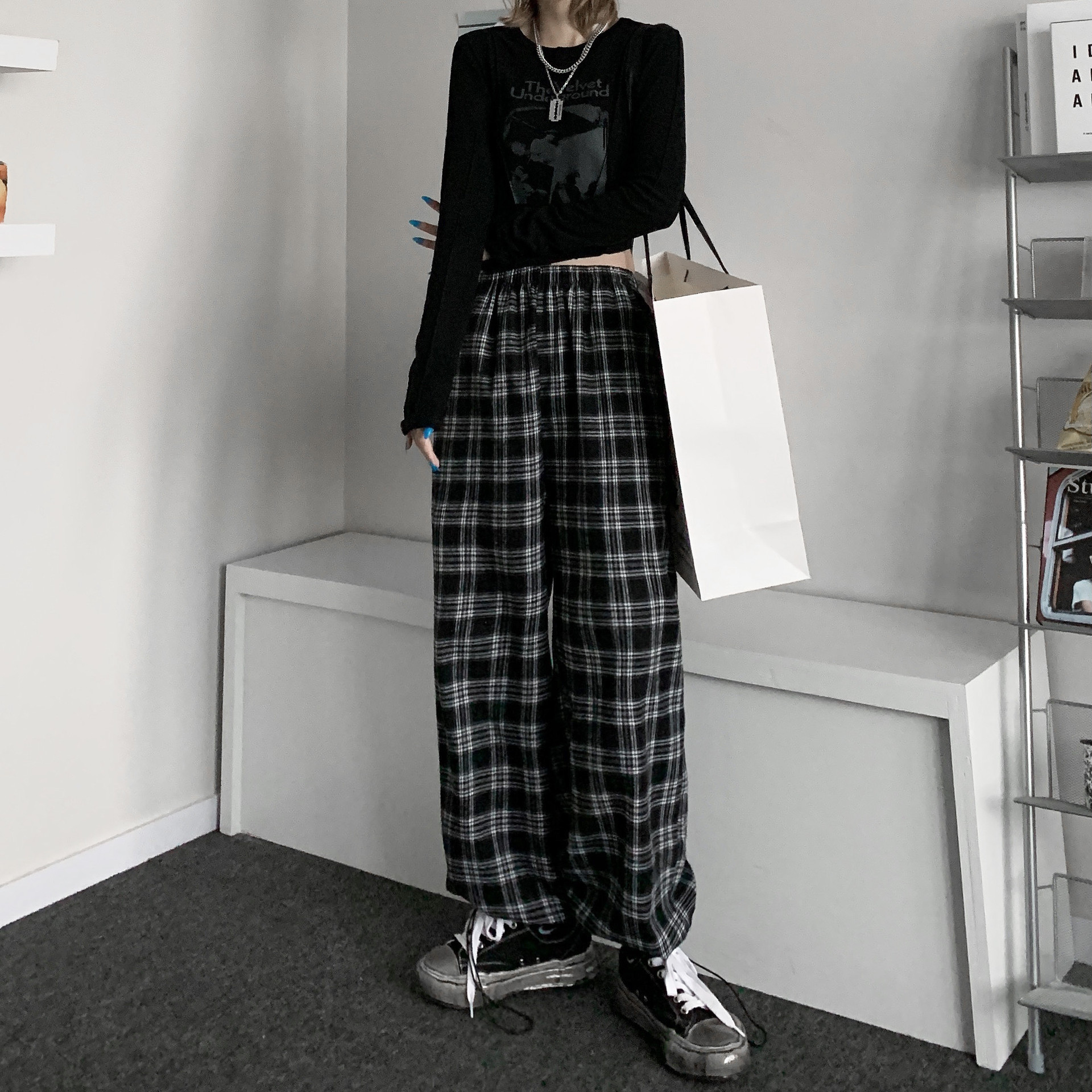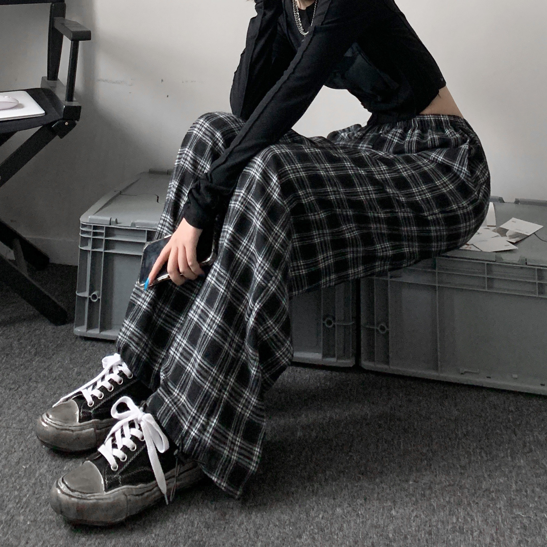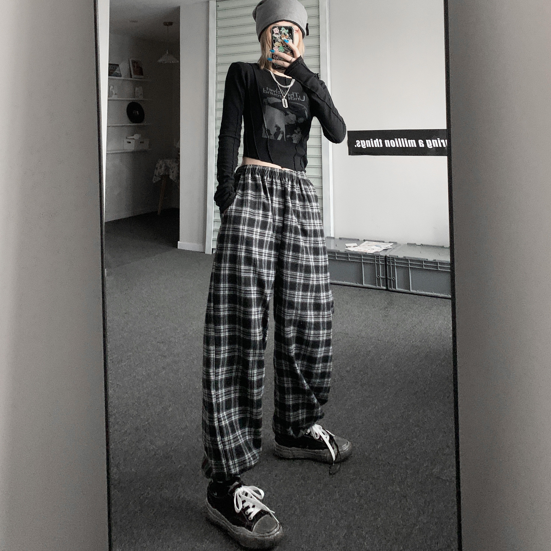 黑白格子裤女年新款春秋冬宽松直筒高腰显瘦内搭休闲阔腿裤子