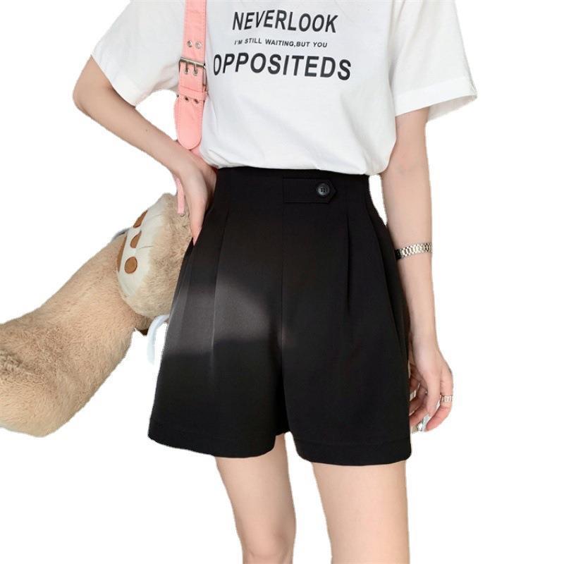 大码高腰阔腿短裤显瘦夏季新款胖mm设计感小众宽松休闲热裤西装裤
