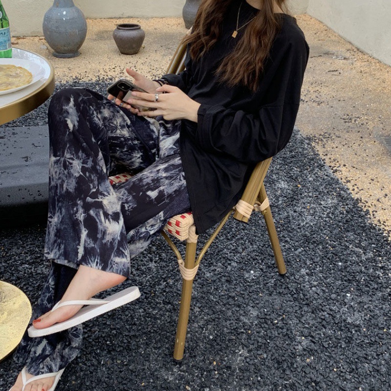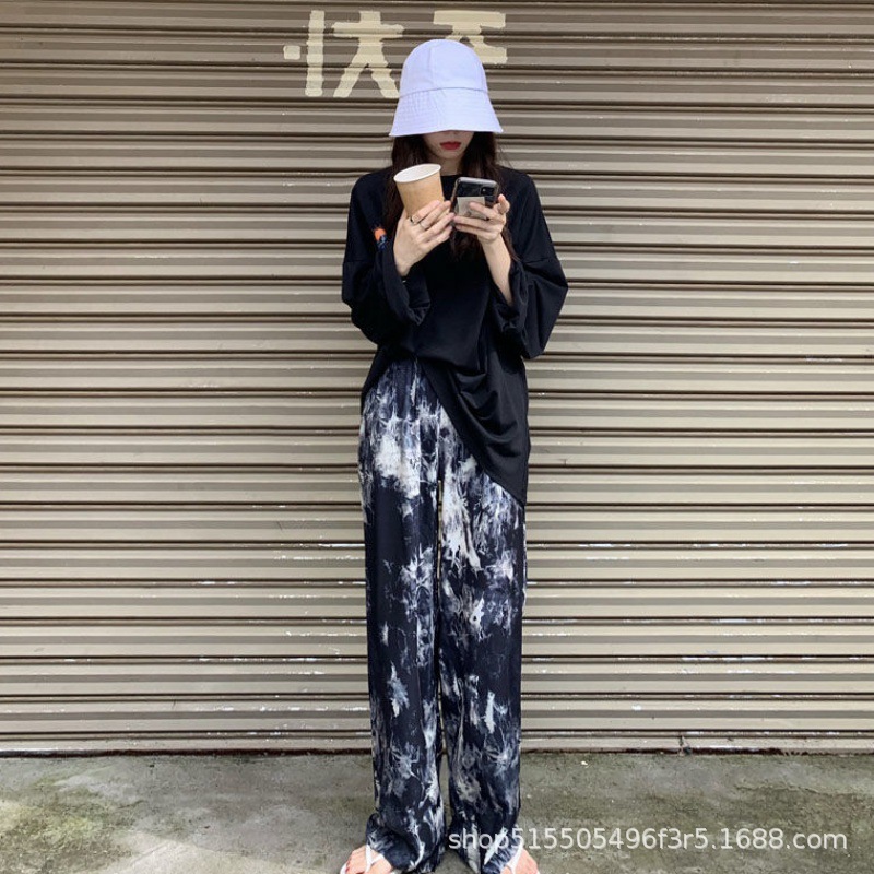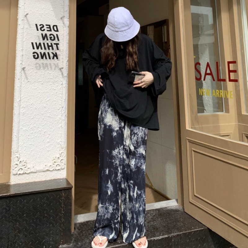 扎染阔腿裤夏季薄款宽松显瘦休闲裤女高腰垂感直筒裤子拖地裤长裤