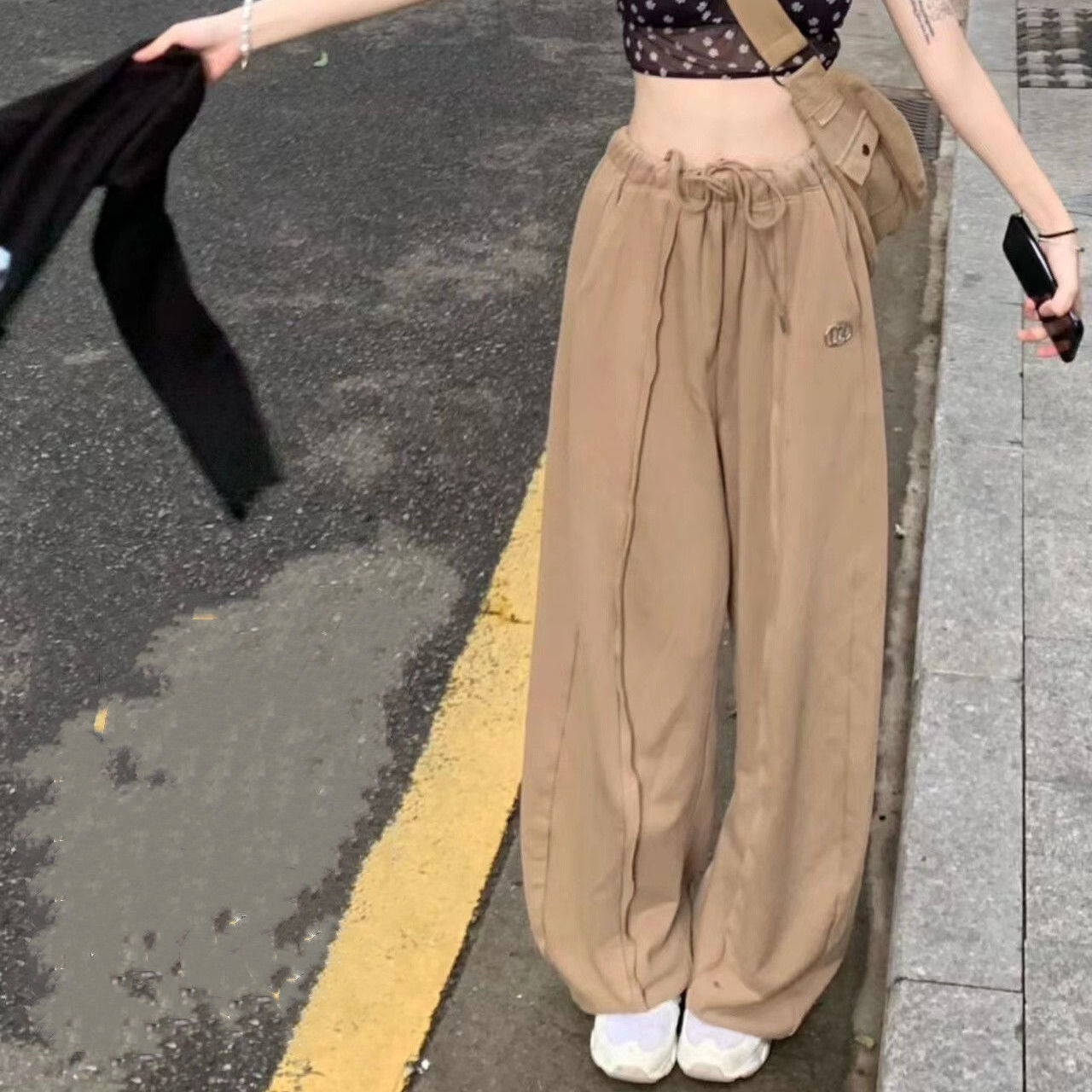 秋季新款垂感休闲裤女百搭抽绳直筒长裤宽松bf阔腿裤子