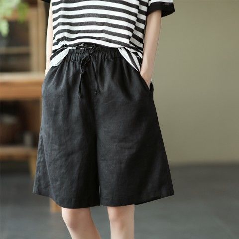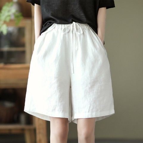 棉短裤女宽松显瘦裤子新款阔腿夏薄款高腰百搭五分休闲短裤
