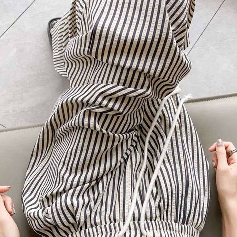 法式条纹镂空短袖薄款针织衫女设计感高腰短款宽松冰丝T恤上衣夏