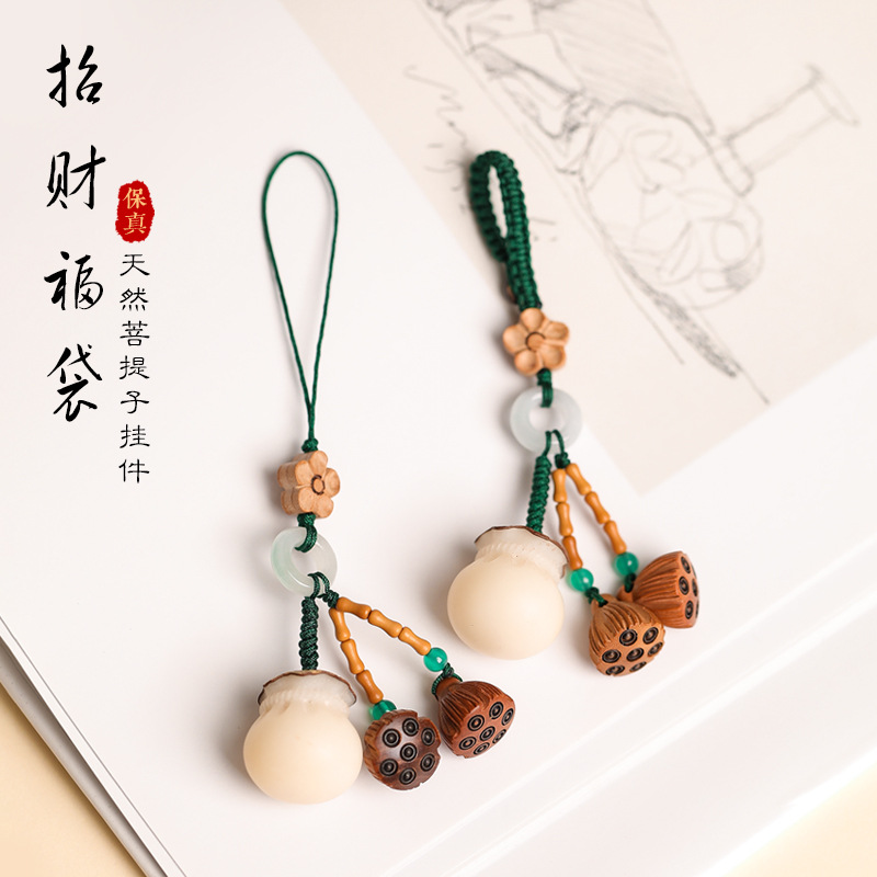 菩提根莲花汽车钥匙扣挂件桃木莲蓬可爱精致手机链小吊坠男女挂饰