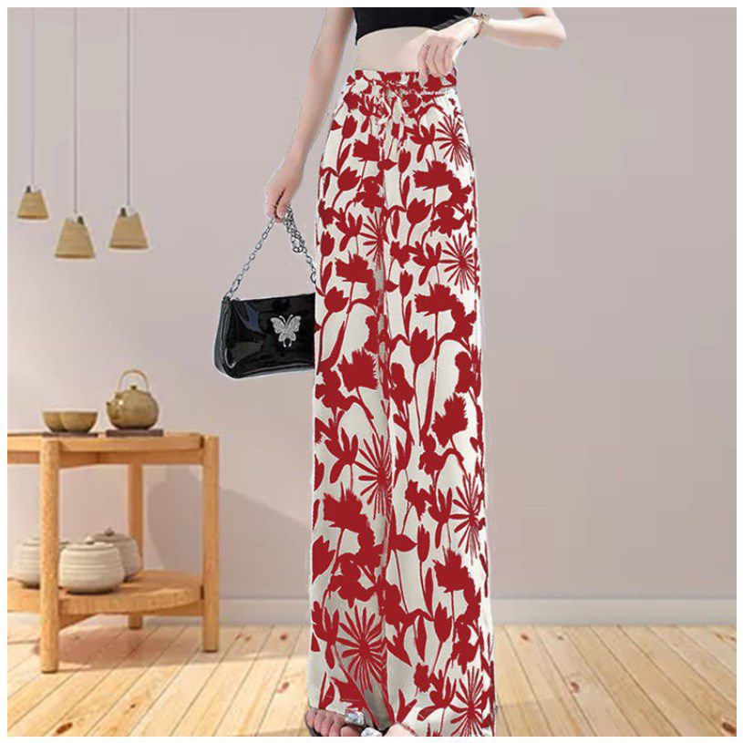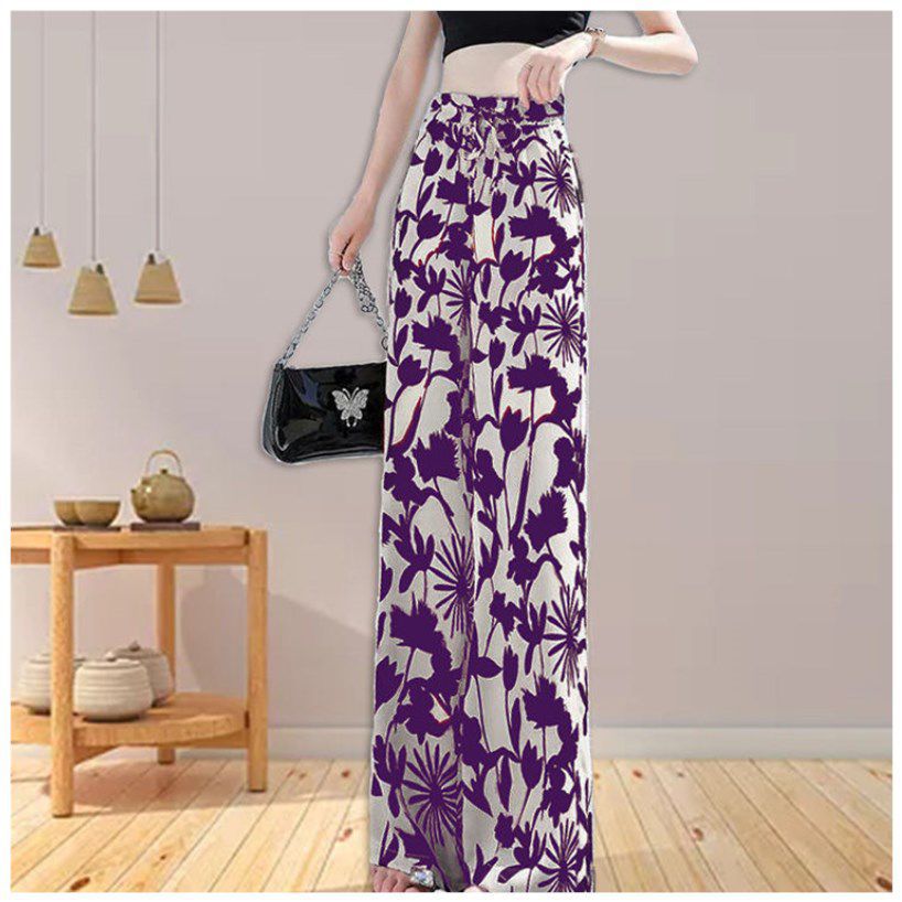 扎染直筒阔腿裤裤女夏高腰宽松垂坠感花色冰丝拖地甩裤休闲西装裤