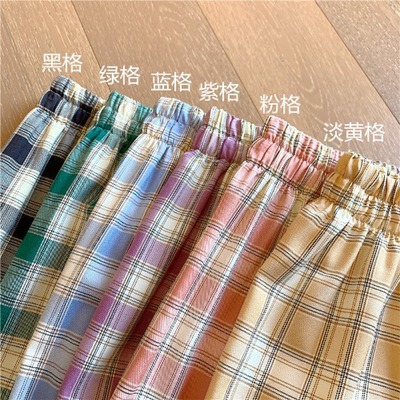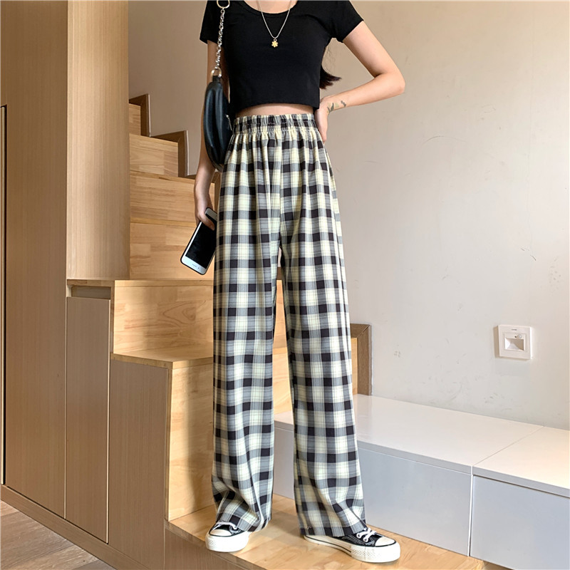 格子阔腿裤女大码胖MM垂感直筒宽松休闲拖地长裤