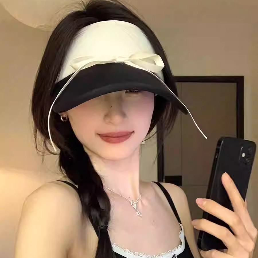 甜美蝴蝶结绑带遮阳帽女夏季新款冰丝防晒遮阳空顶帽透气防紫外线