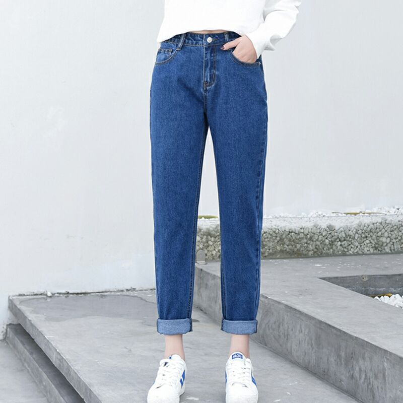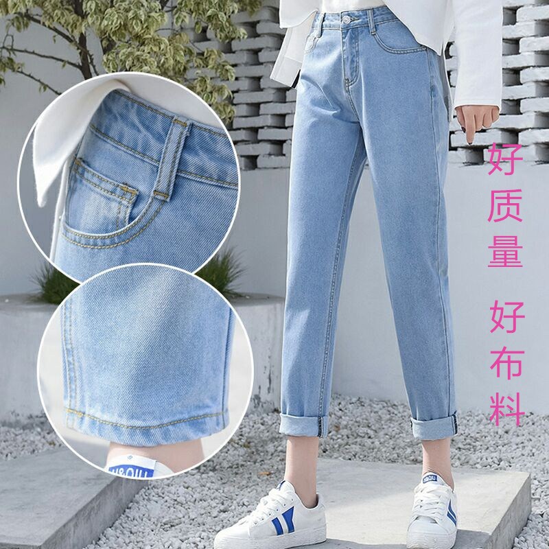 好质量学生宽松牛仔裤女九分裤高腰显瘦bf风阔腿裤直筒哈伦裤