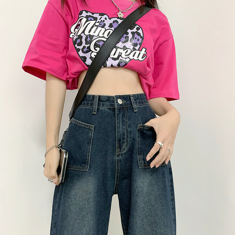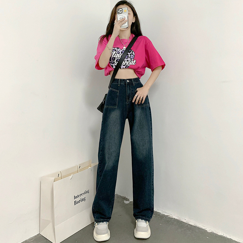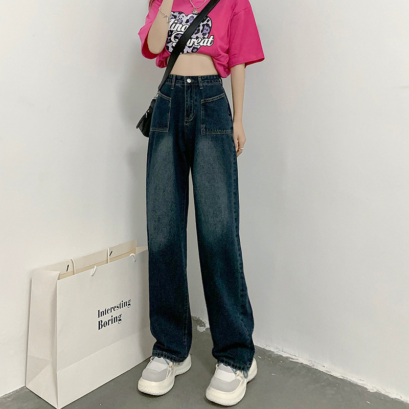 高腰牛仔裤女秋新款高街宽松大码mm直筒显瘦ins阔腿拖地裤子