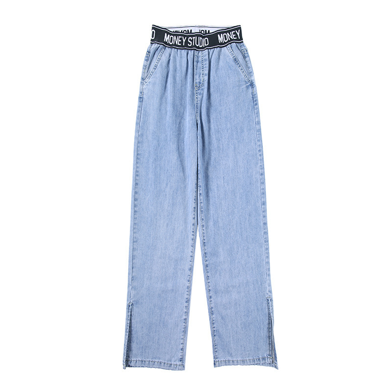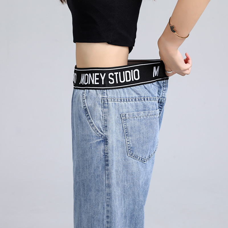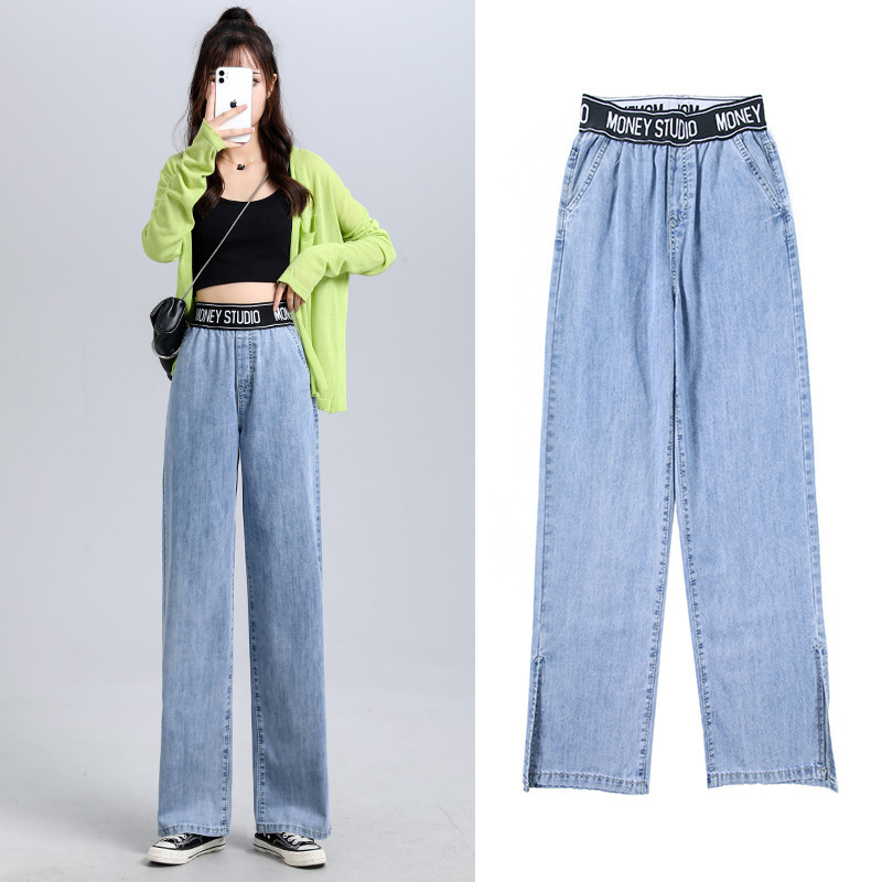 高档天丝薄款高腰牛仔裤韩国女装垂感阔腿宽松直筒显瘦百搭拖地裤
