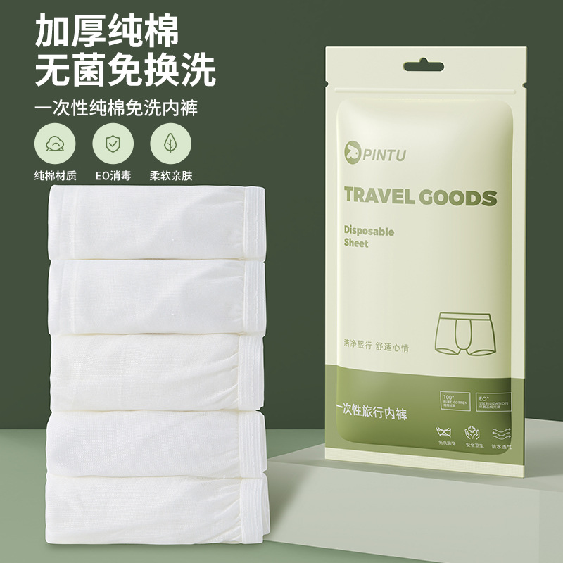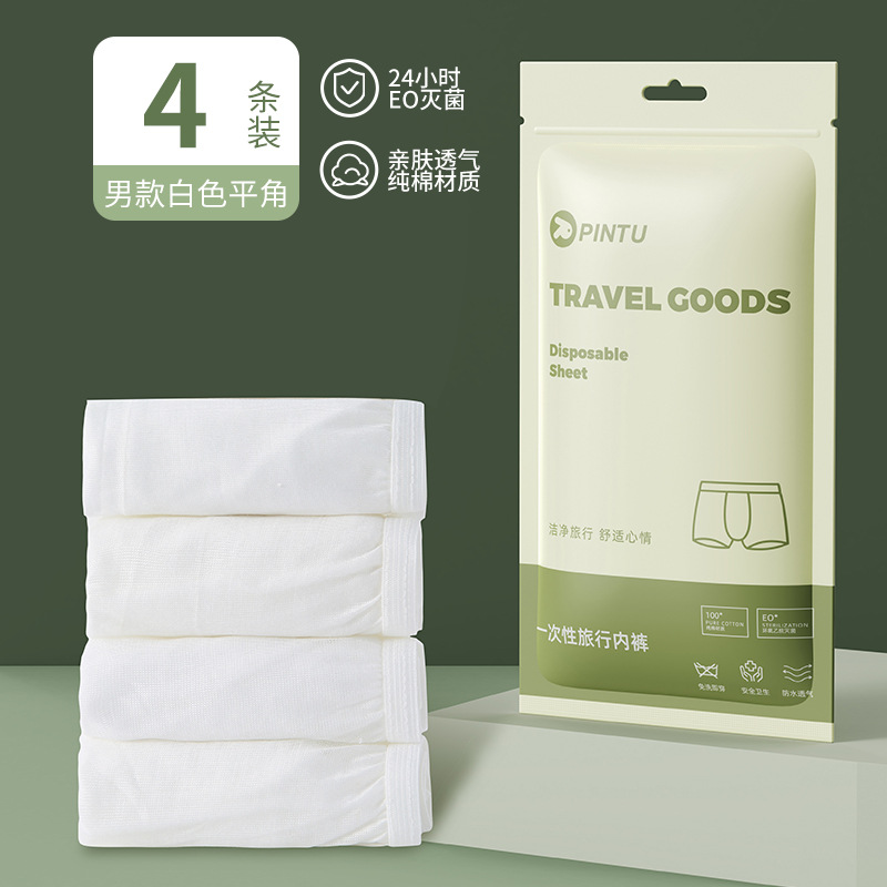 男士平角4条袋装一次性内裤棉质免洗无菌出差旅行便携透气款男用