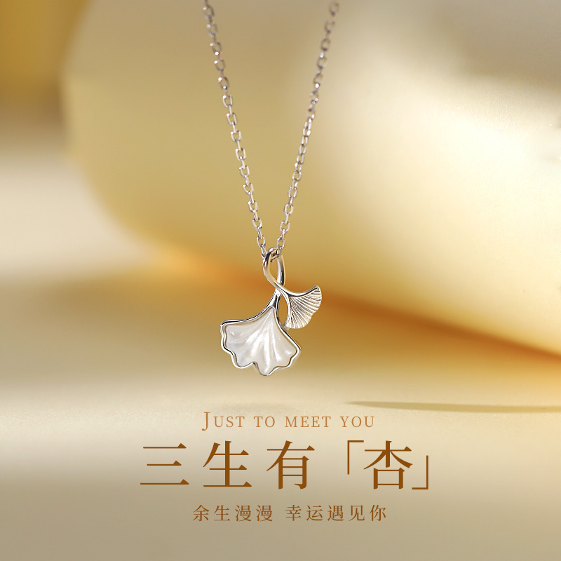 三生有杏S999足银银杏项链女生轻奢高级感锁骨链新款百搭礼物