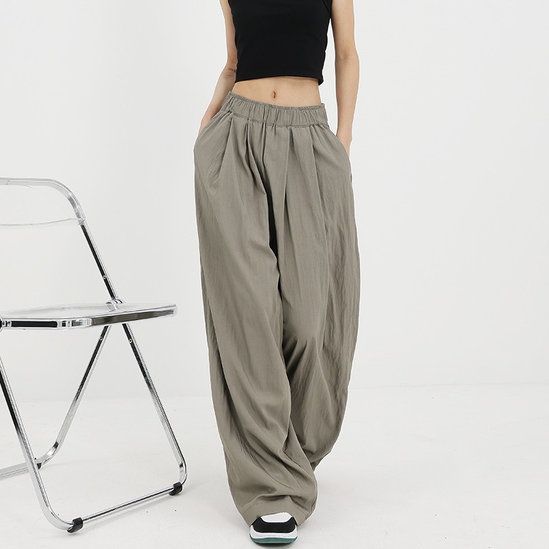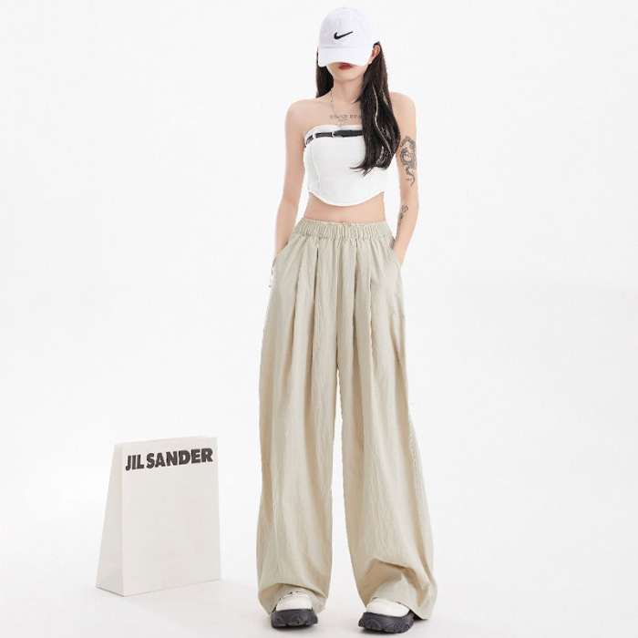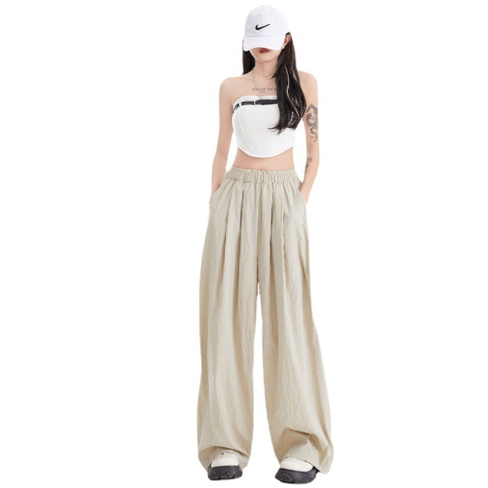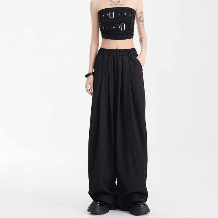 高腰垂感休闲日系慵懒感山本裤褶皱直筒裤子阔腿裤女夏季跨境