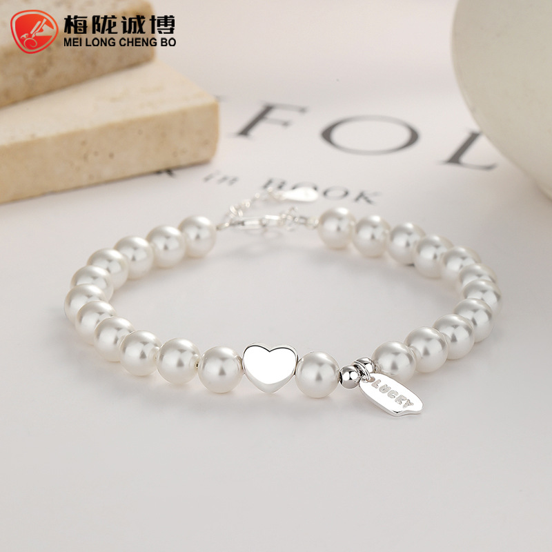 925纯银爱心珍珠手链女ins时尚心形珍珠手饰轻奢气质高级感银饰品