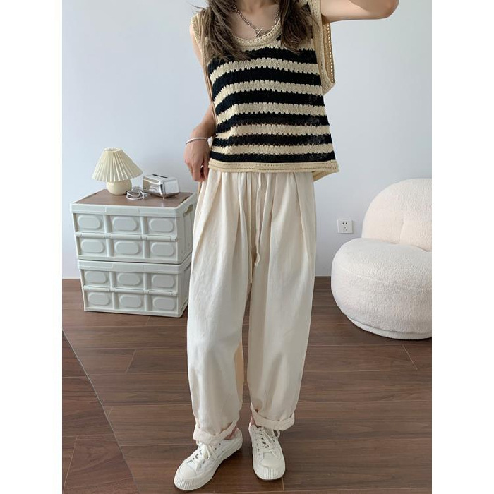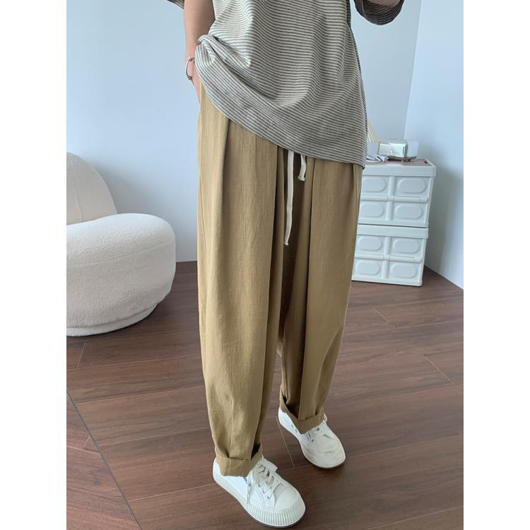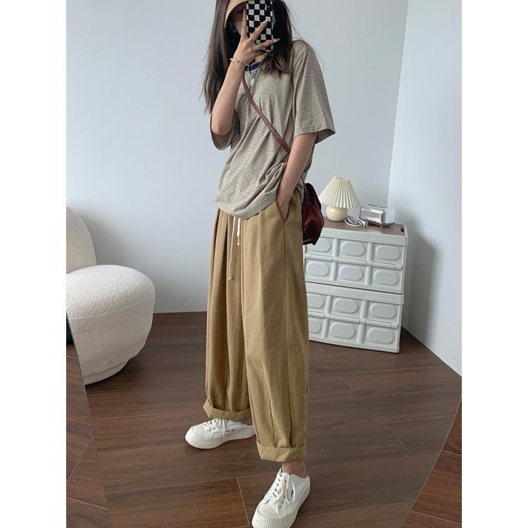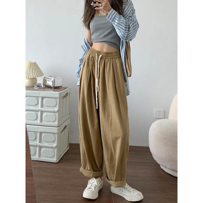 卡其色工装裤女秋夏高腰显瘦95棉日系宽松萝卜裤休闲直筒裤阔腿裤