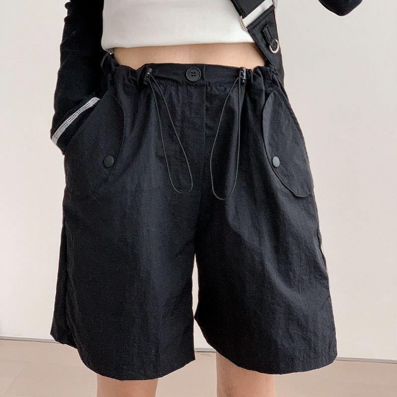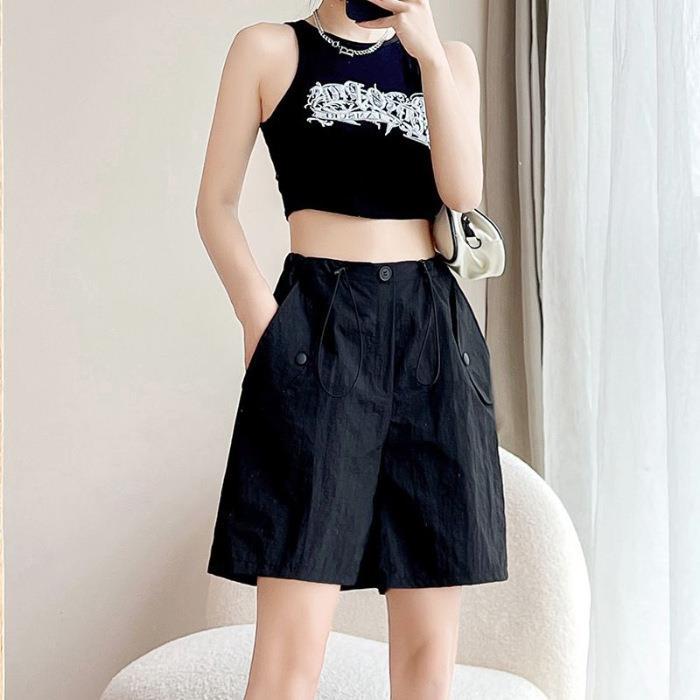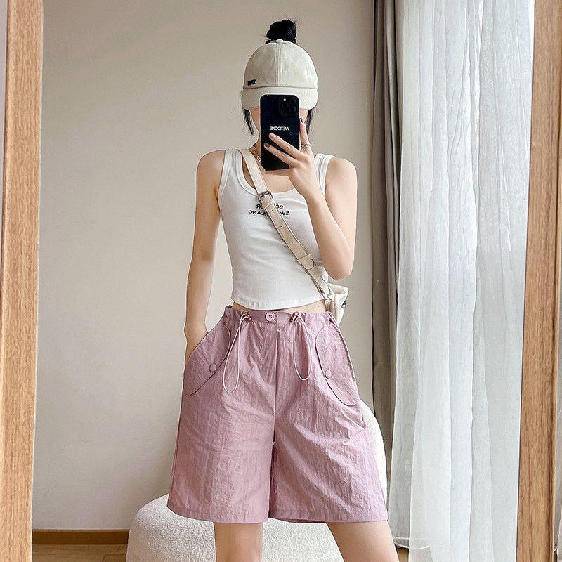 工装短裤女夏季薄款新款卡其色a字休闲宽松阔腿运动五分裤子