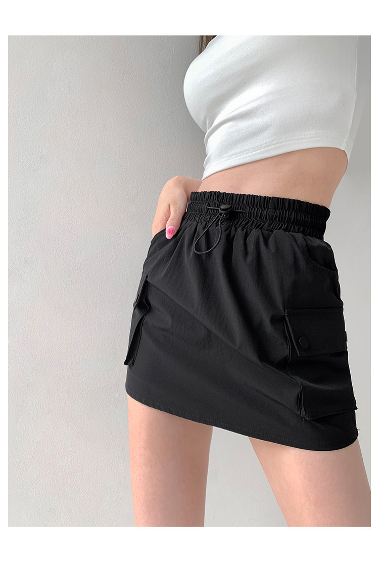欧美街头辣妹抽绳松紧腰工装短裙复古夏季显瘦学院风包臀半身裙潮