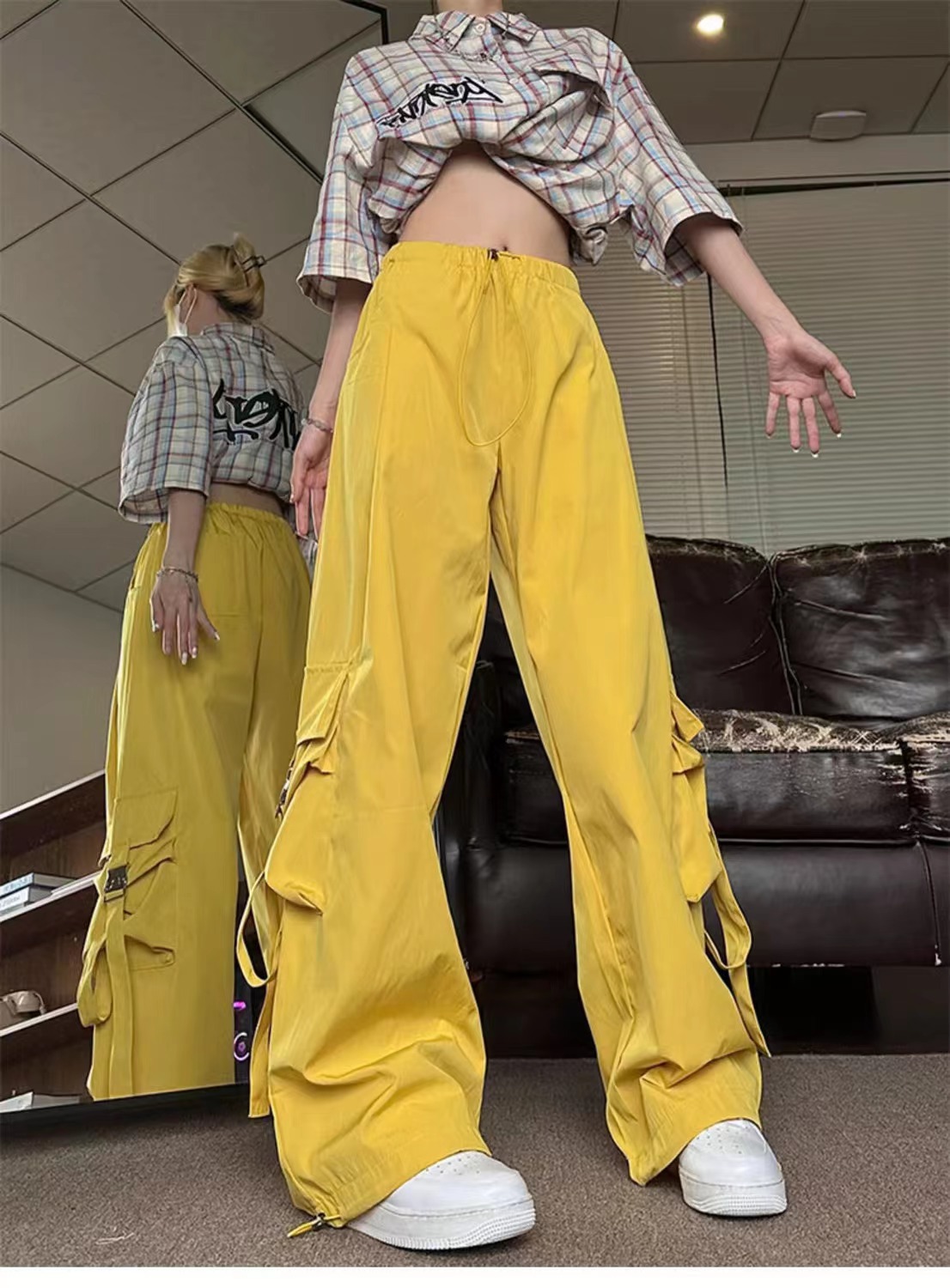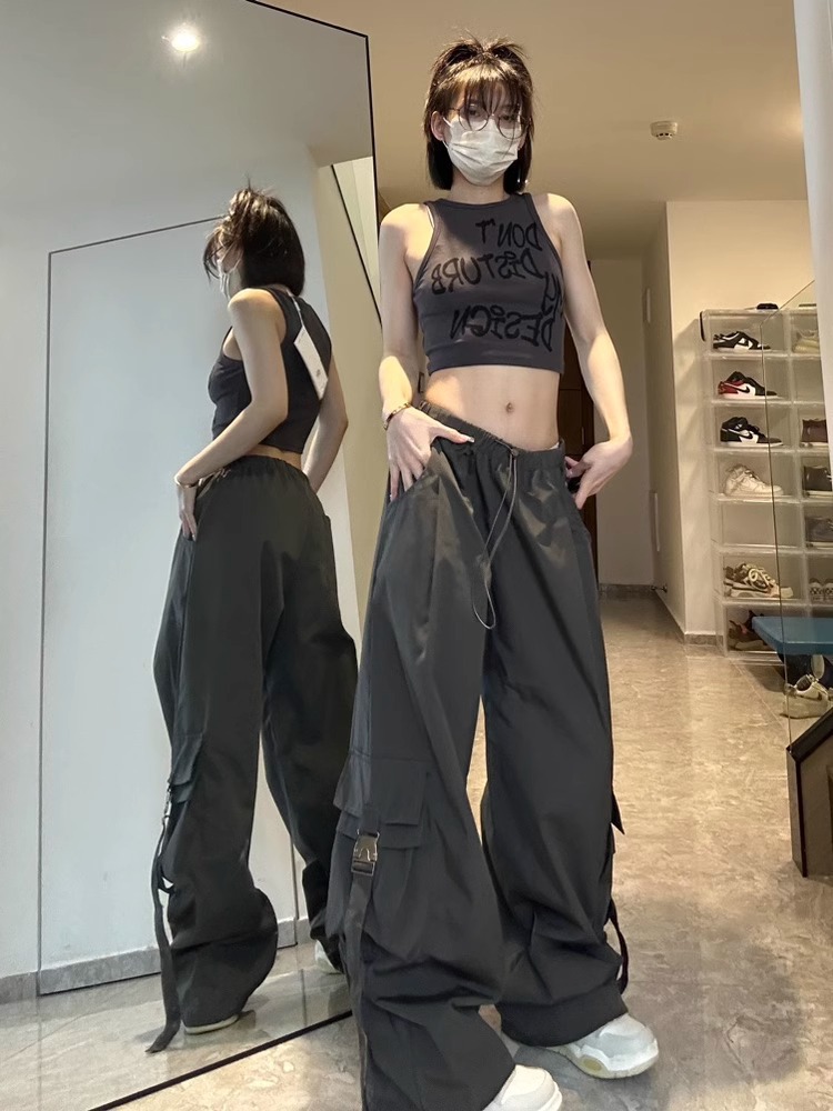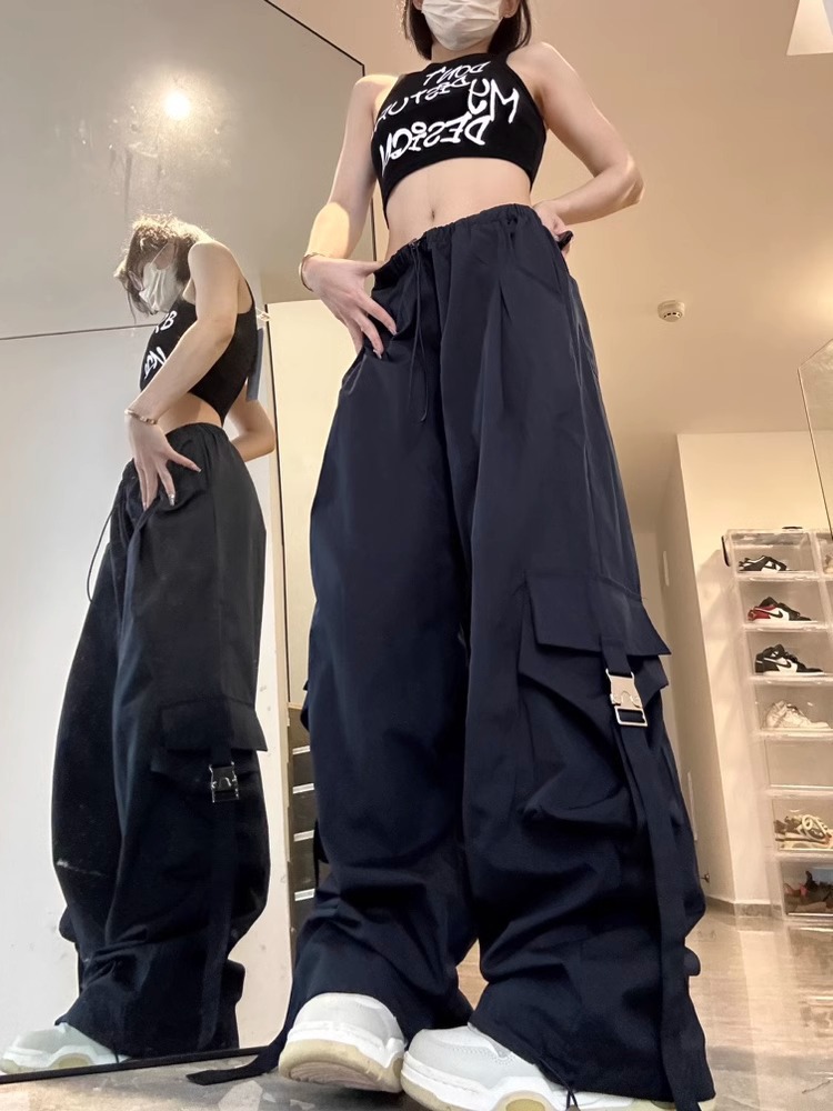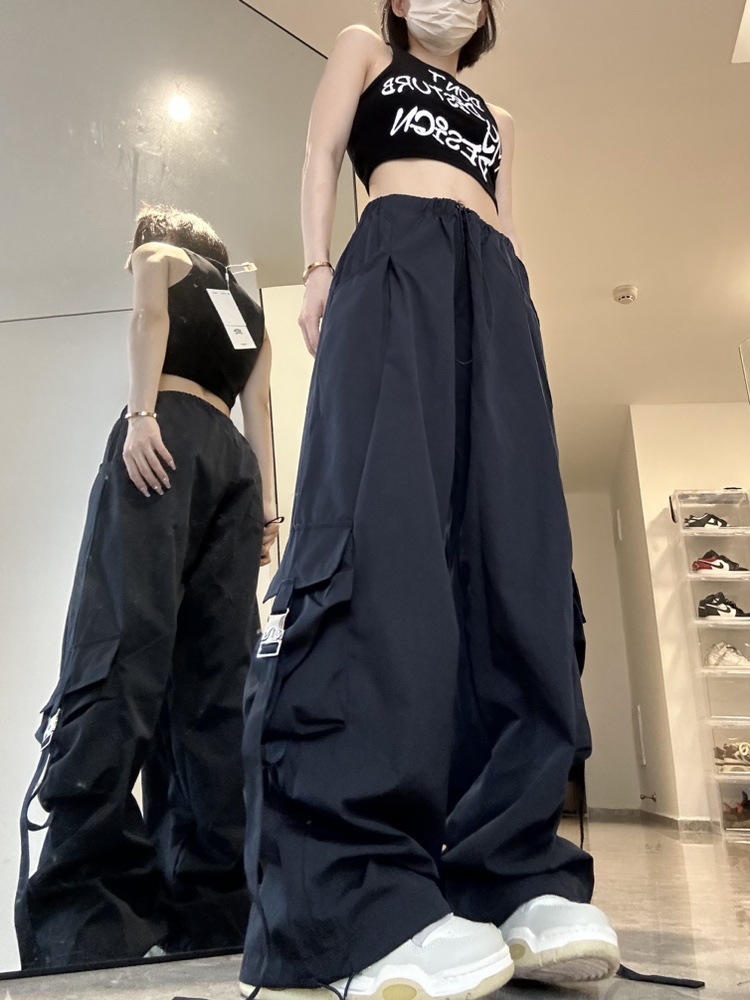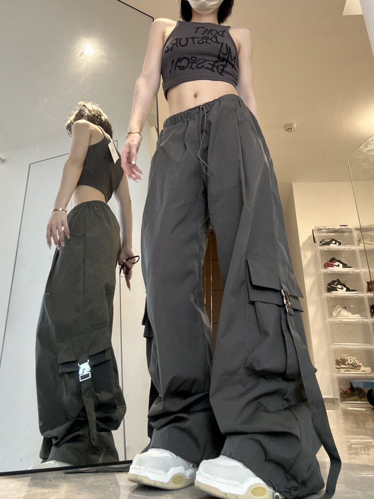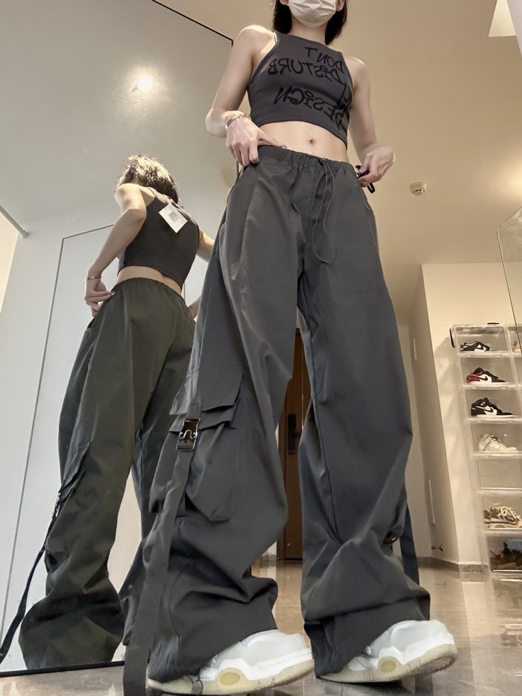 美式vibe风设计感复古休闲速干伞兵工装裤裤子女宽松直筒降落伞裤