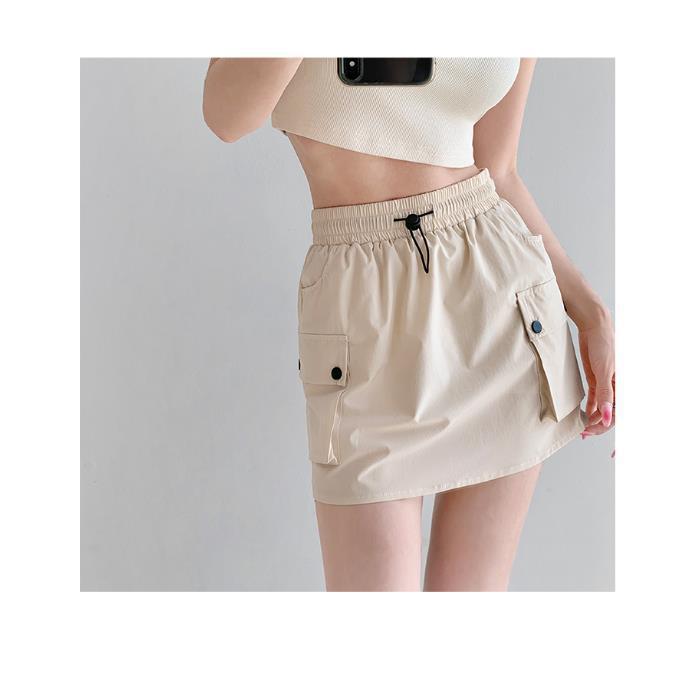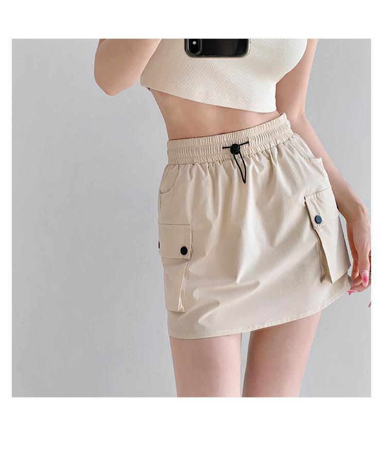 欧美街头辣妹抽绳松紧腰工装短裙复古夏季显瘦学院风包臀半身裙潮