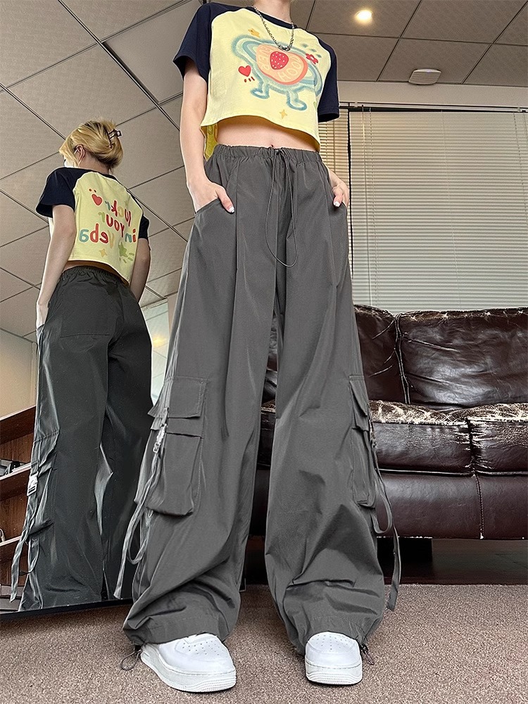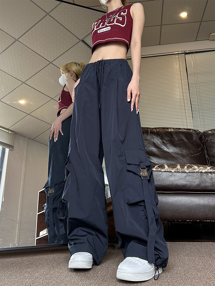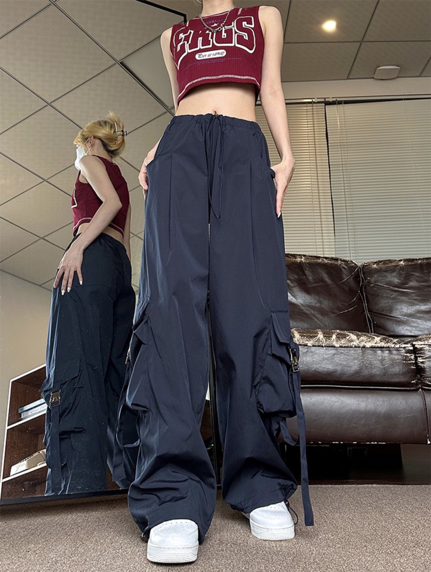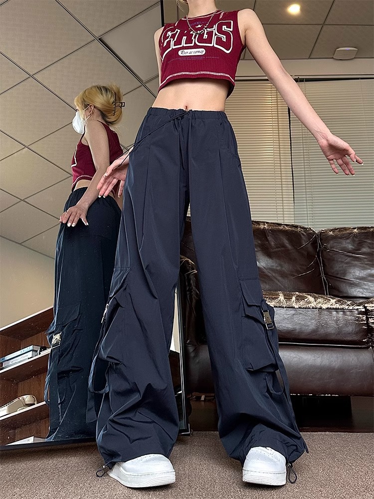 美式复古直筒阔腿裤子高腰宽松休闲百搭显瘦春秋新款工装裤女