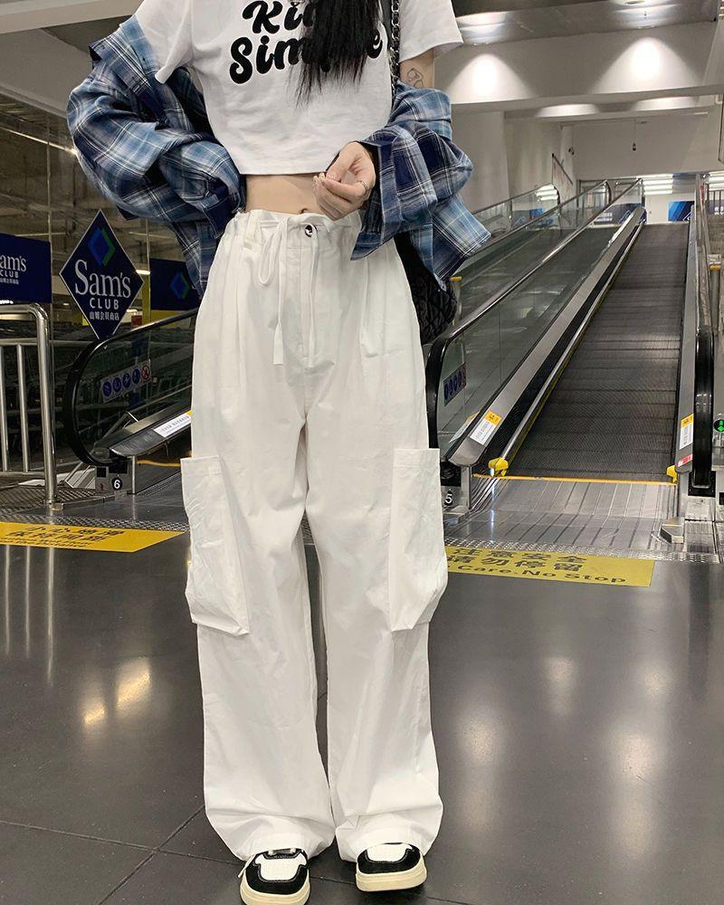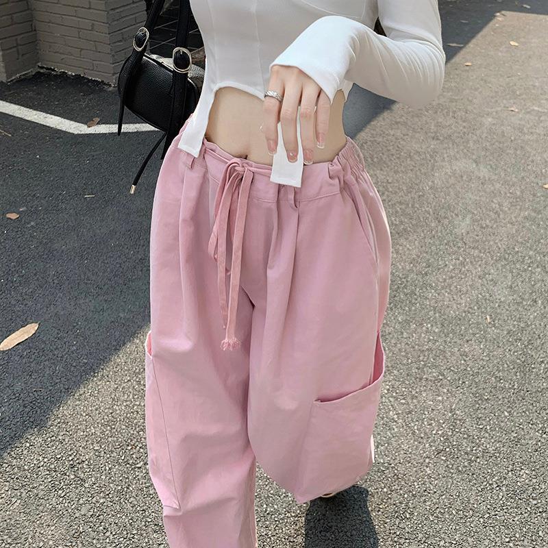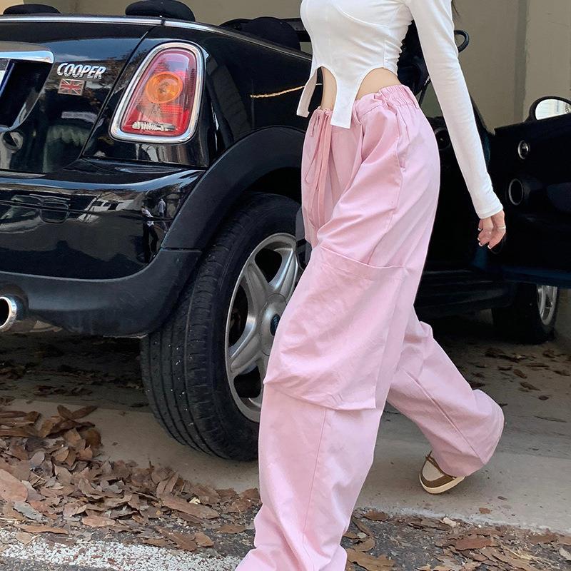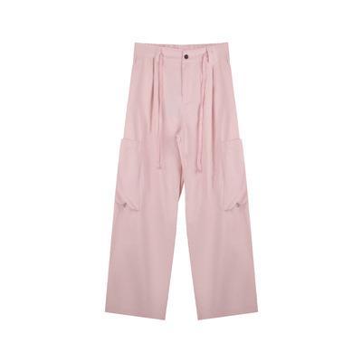 粉色阔腿裤女春夏新款高腰垂感宽松显瘦直筒美式工装裤