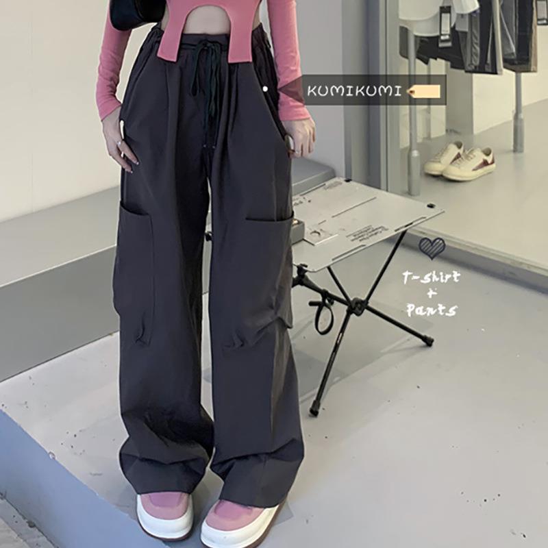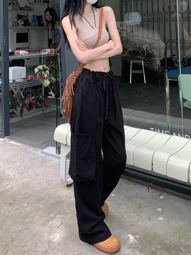 甜酷风辣妹美式工装裤女装宽松设计感小众休闲阔腿灰色裤子ins潮
