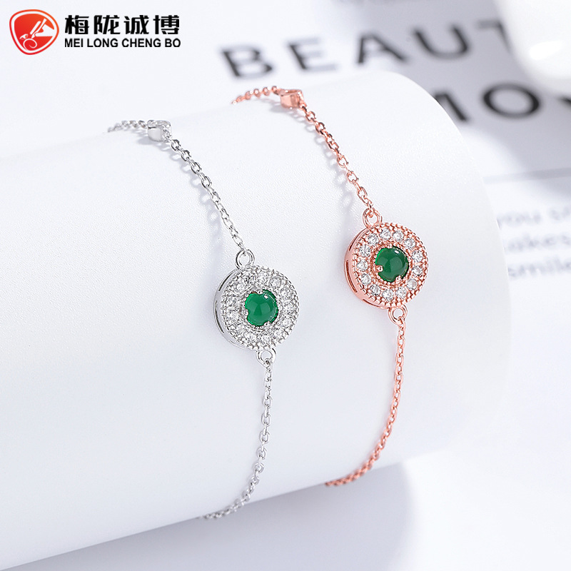 925纯银圆形祖母绿锆石手链女个性设计感满钻手链轻奢气质手饰品