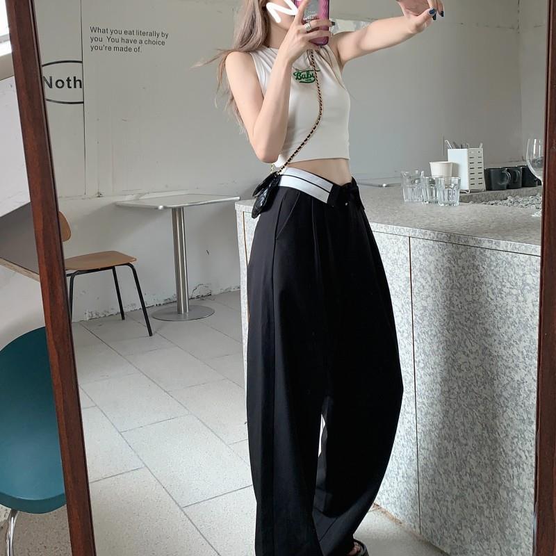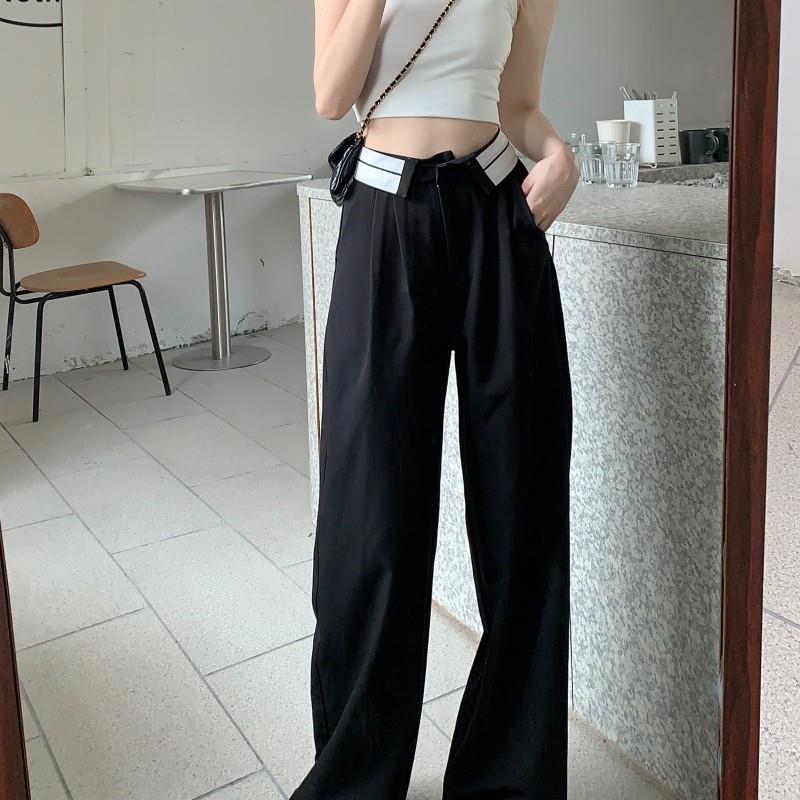 直筒裤高腰黑色显瘦西装裤休闲裤女夏季垂感宽松阔腿裤拖地长裤子