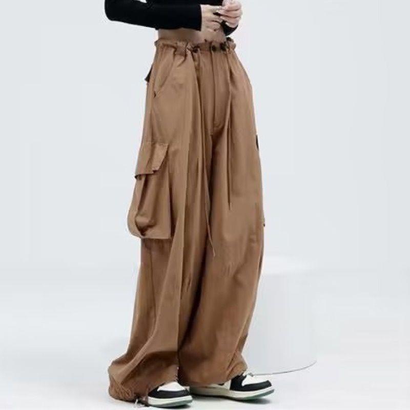 束脚工装裤女夏季设计感口袋高腰直筒休闲裤子宽松显瘦阔腿长裤潮