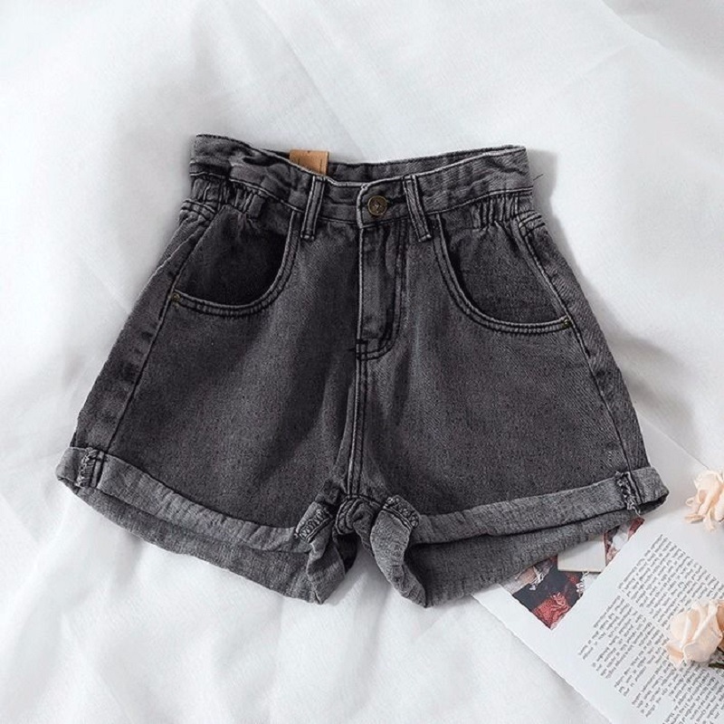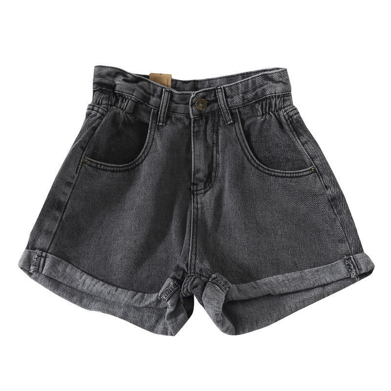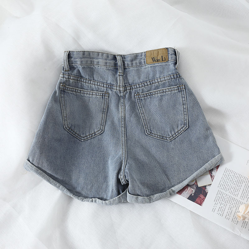 港味复古高腰宽松阔腿裤牛仔短裤女夏季百搭卷边休闲热裤女装