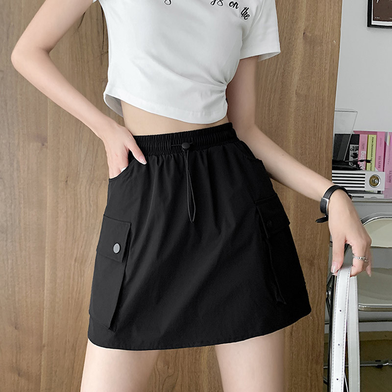 松紧腰抽绳工装半身裙女夏季新款辣酷高腰设计感小众A字短裙