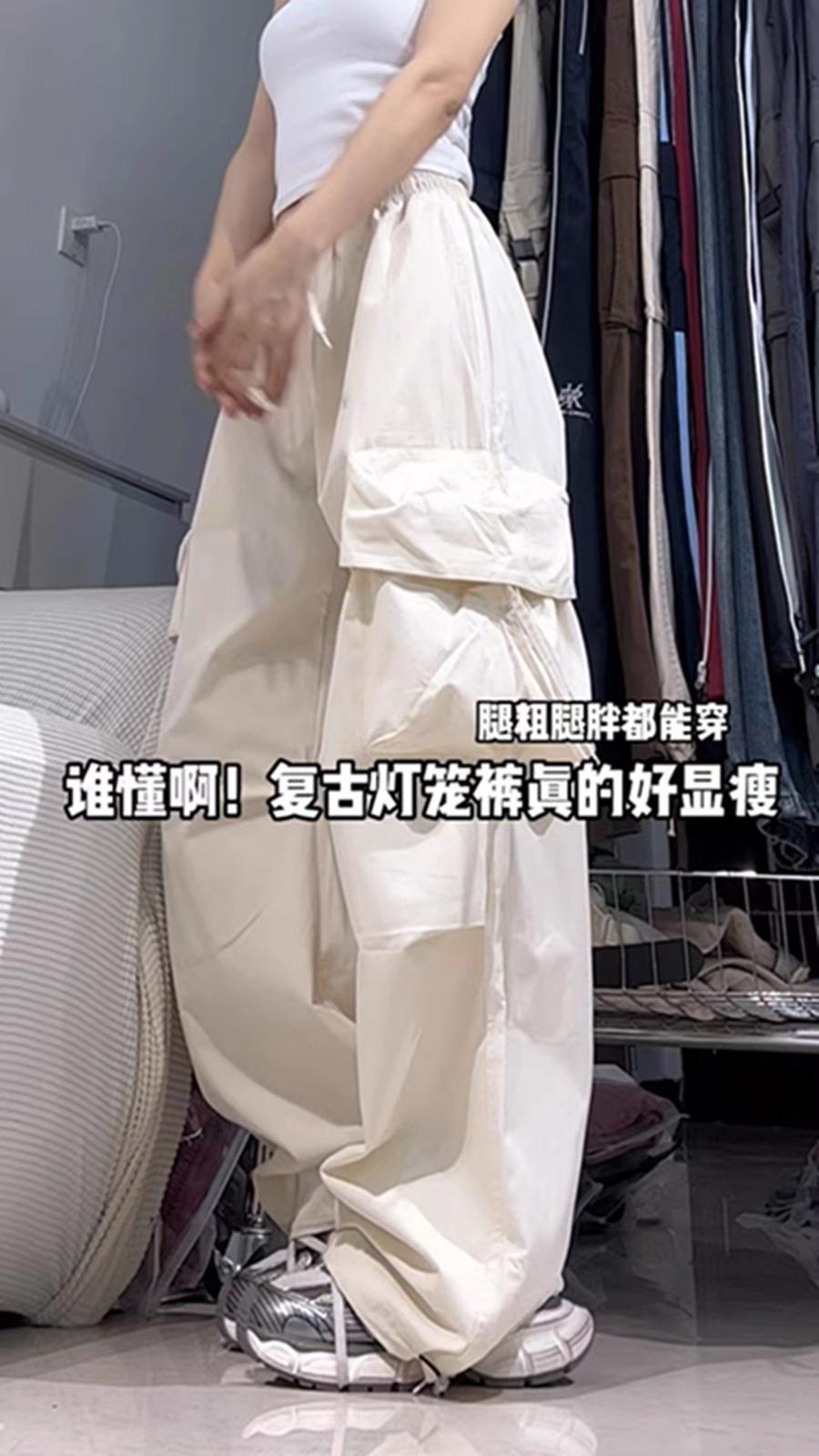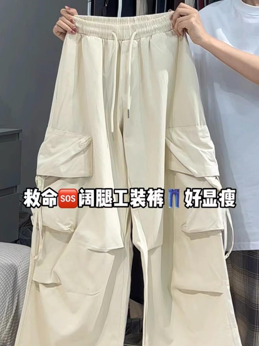 美式复古辣妹工装裤女夏薄款宽松街舞长裤嘻哈潮流阔腿裤子
