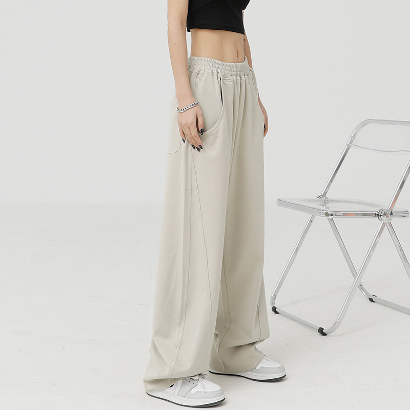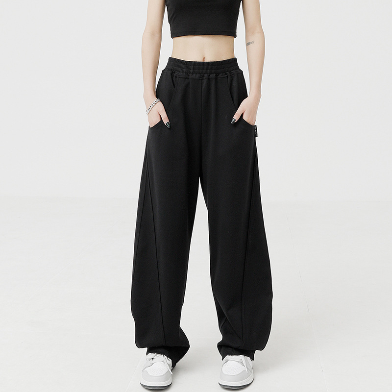 杏色运动裤女秋季新款直筒宽松卫裤潮牌hiphop阔腿裤跳舞裤