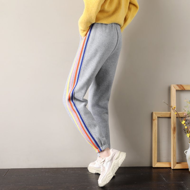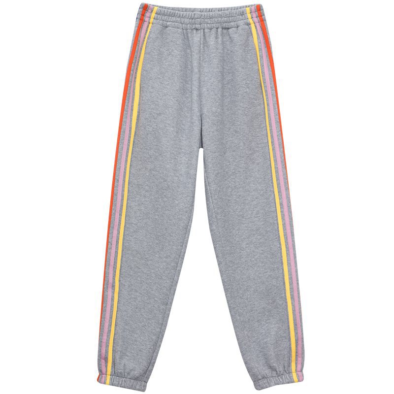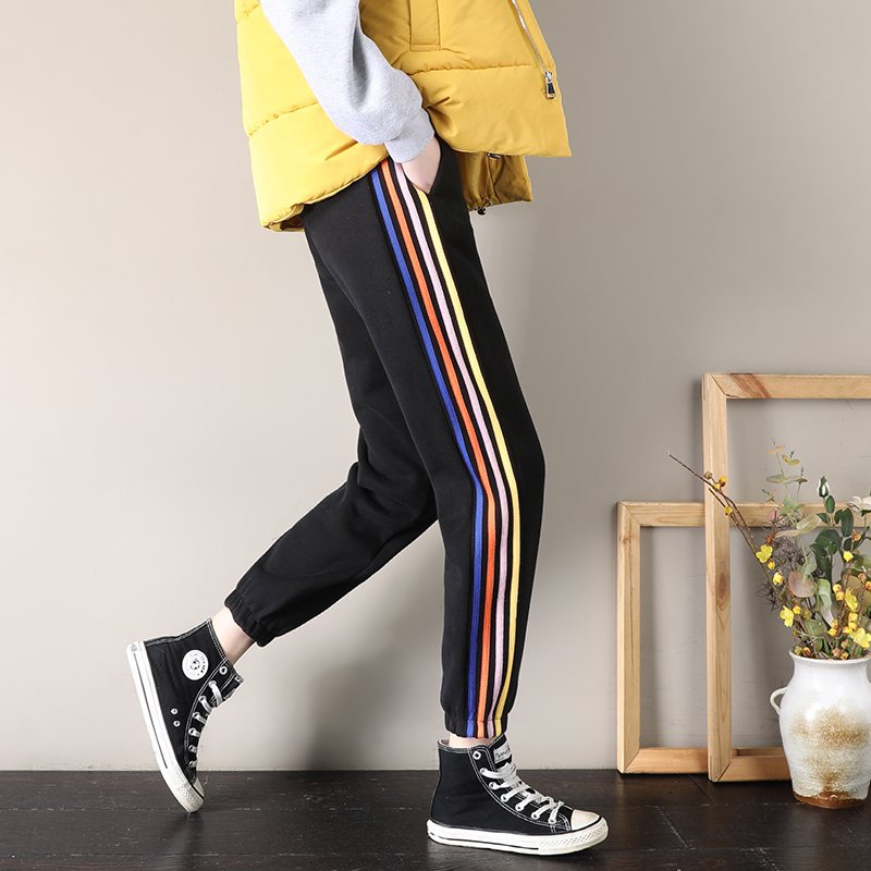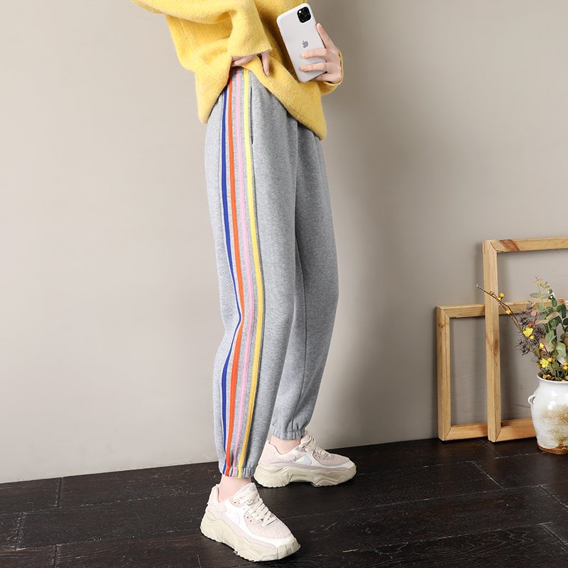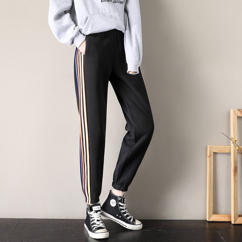 运动裤子女宽松束脚初春外穿彩虹条哈伦女休闲棉卫裤