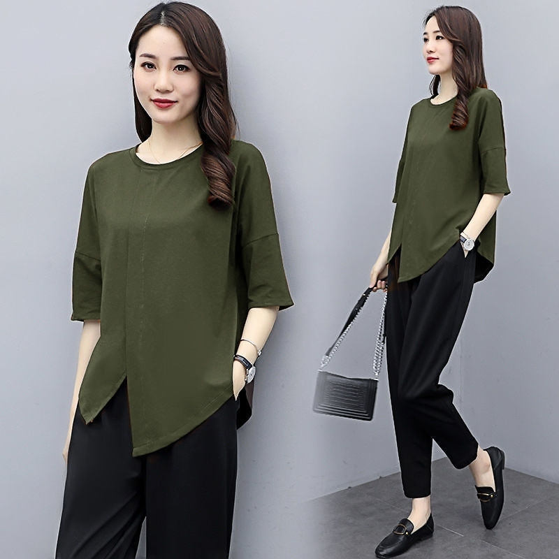胖mm200斤时尚套装夏装新款 大码套装 亚马逊 女装气质显瘦