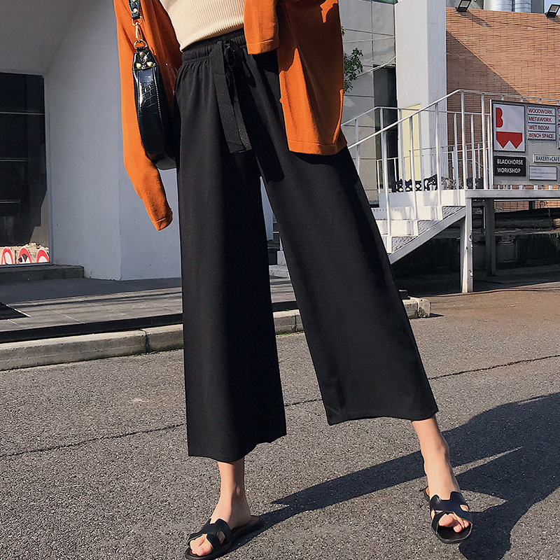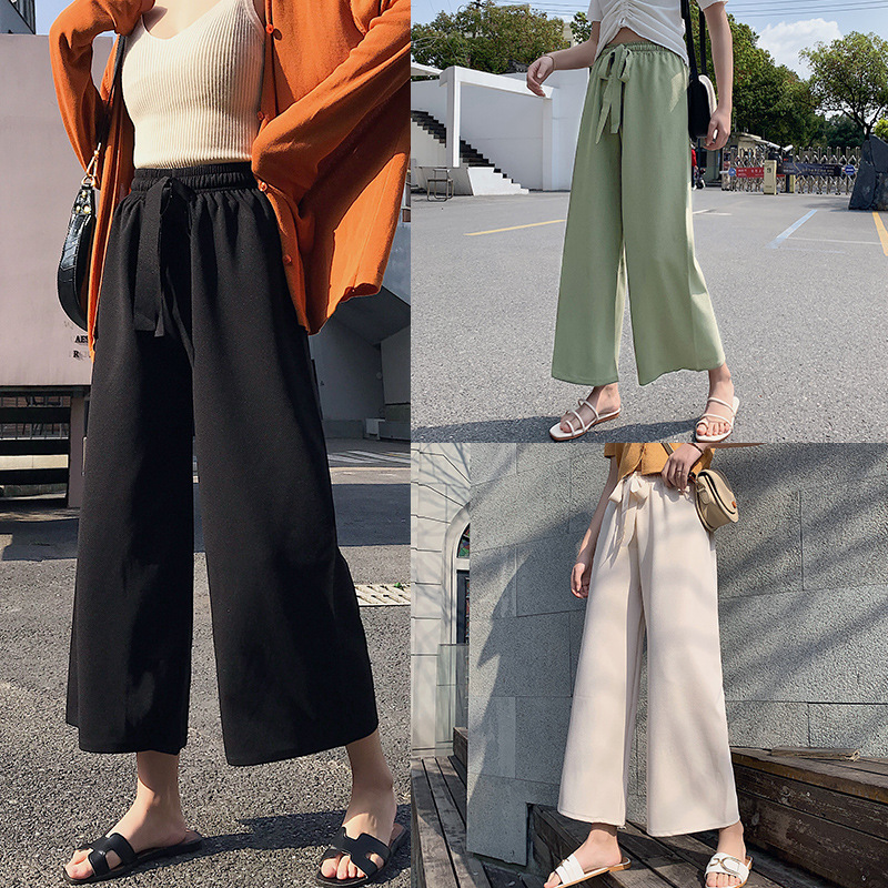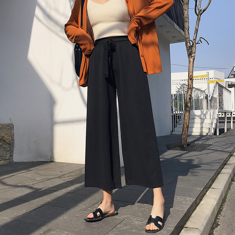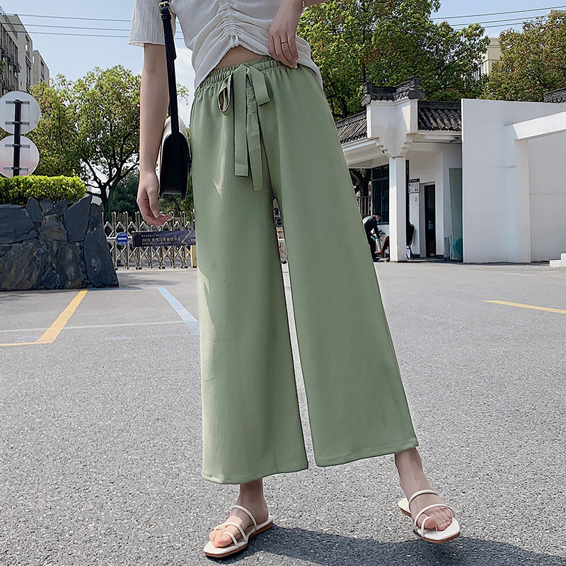 实拍9705#九分裤女松紧腰宽松裤薄款女裤高腰休闲垂感雪纺阔腿裤