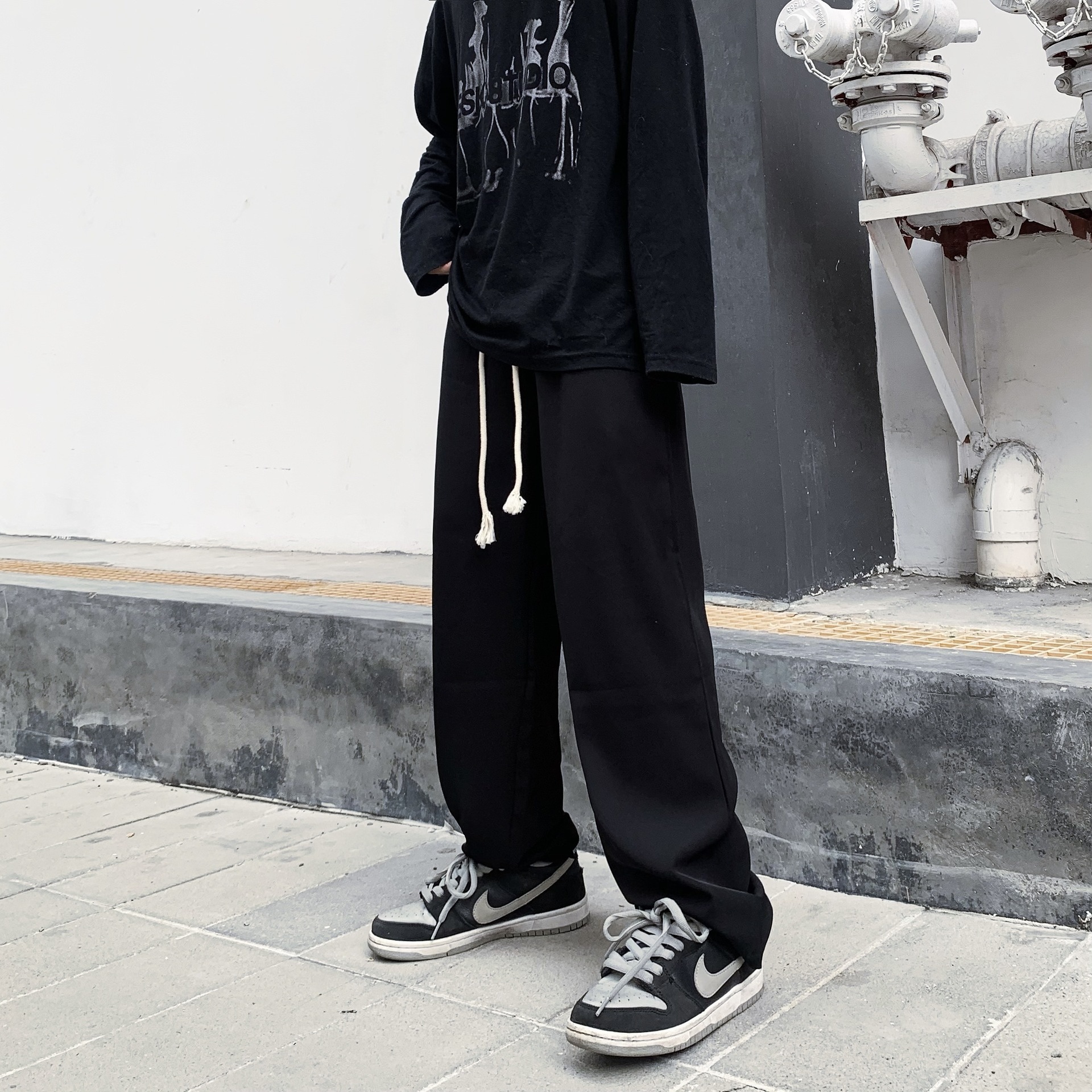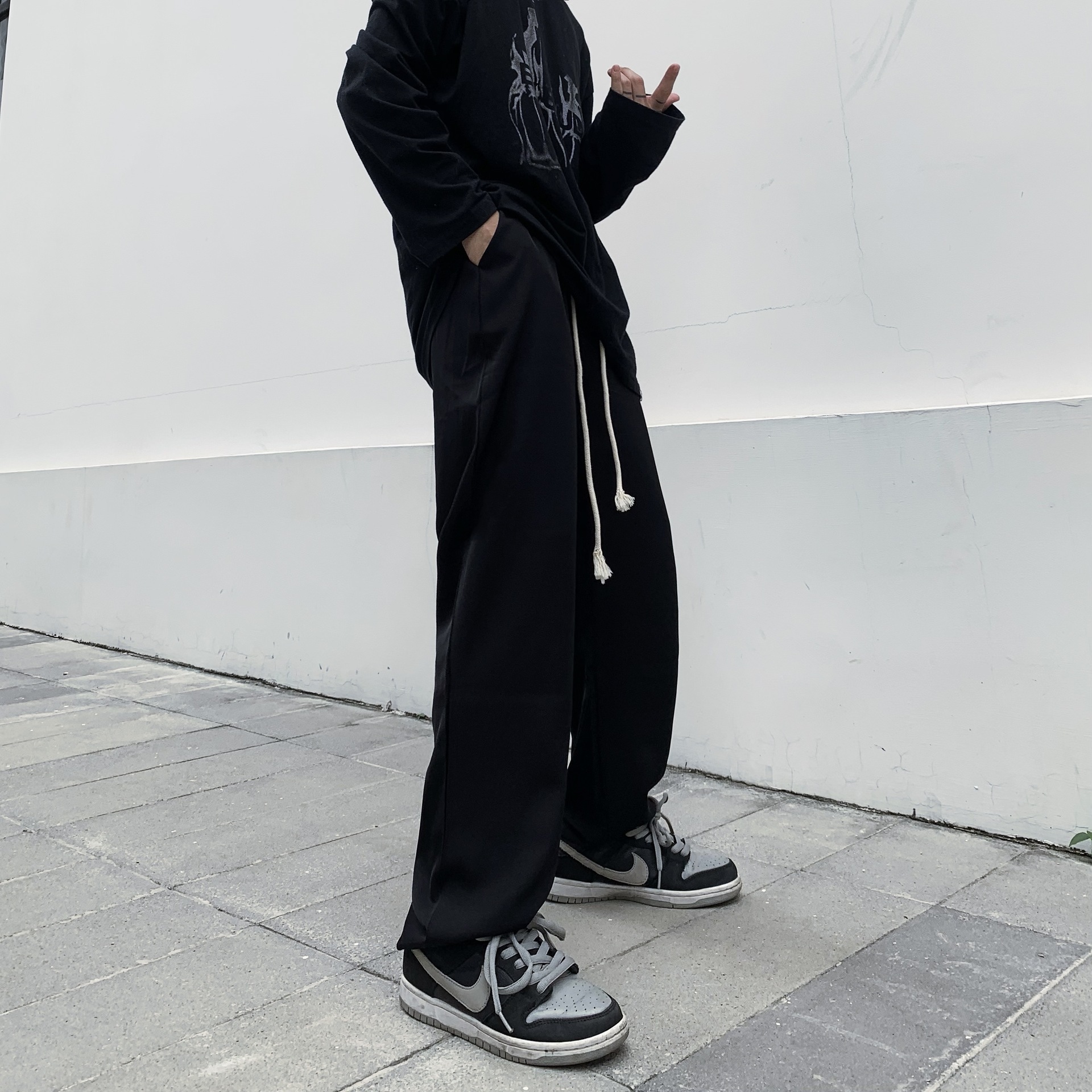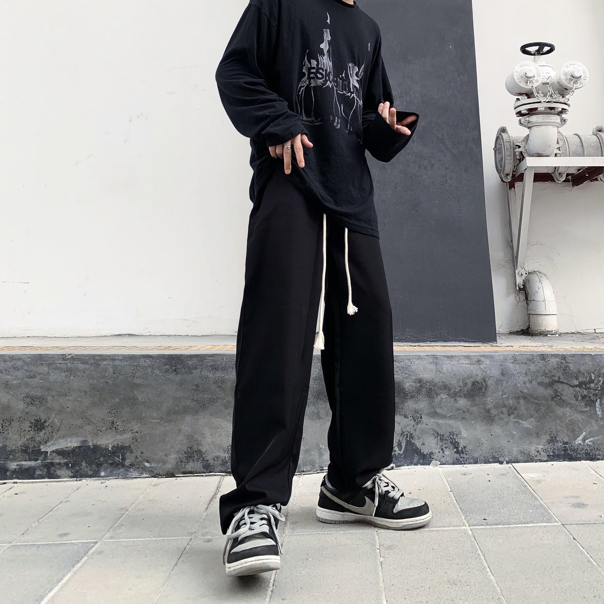 秋季新款垂感休闲裤女百搭抽绳直筒长裤宽松bf阔腿裤子
