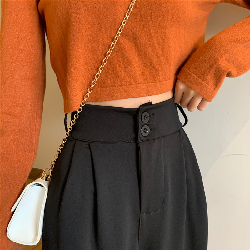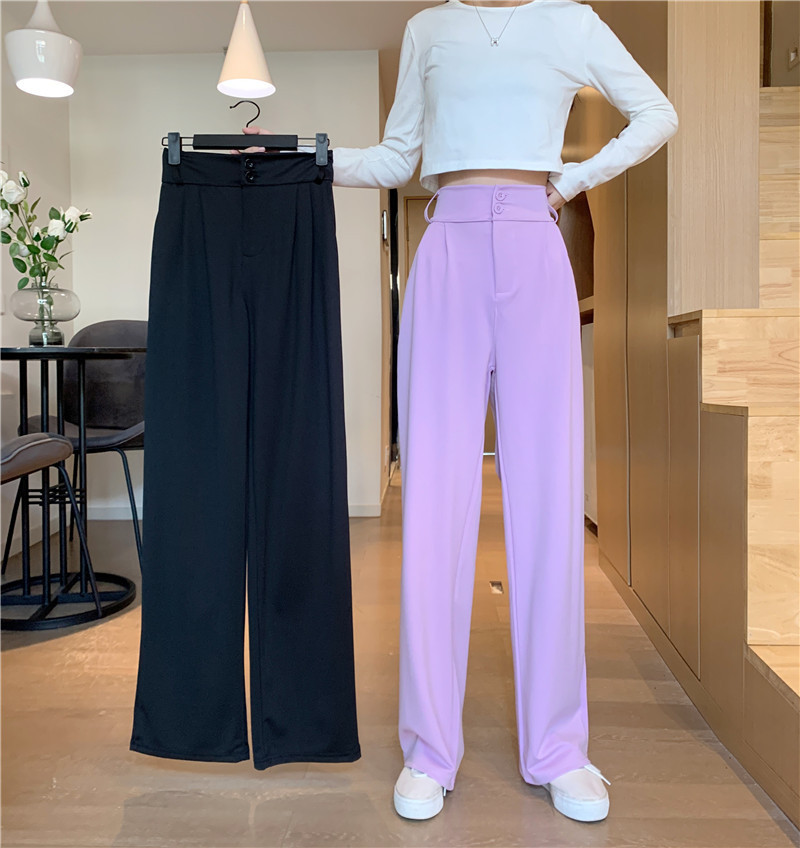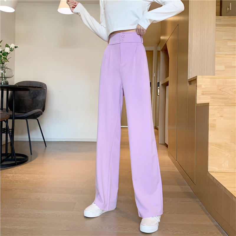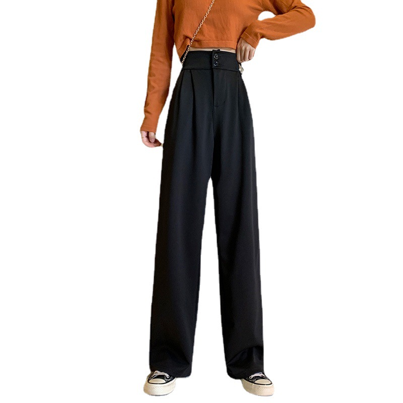 哥弚纹大码垂感高腰阔腿裤女四季休闲宽松拖地西装裤女职业装