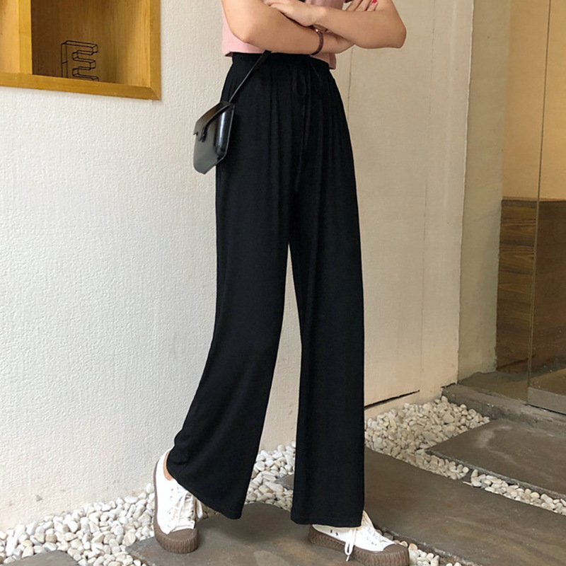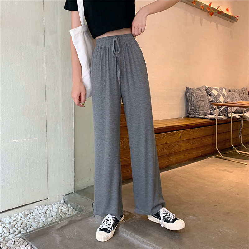 春季高腰显瘦休闲裤女韩版宽松直筒运动裤子百搭松紧腰拖地阔腿裤
