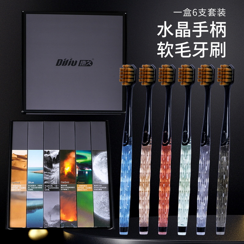 地久高级日式轻奢牙刷套装六支装水晶柄成人家用宽头软毛牙刷