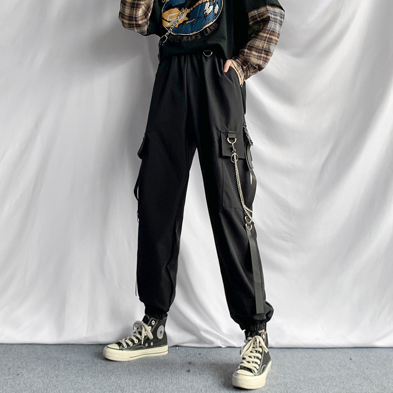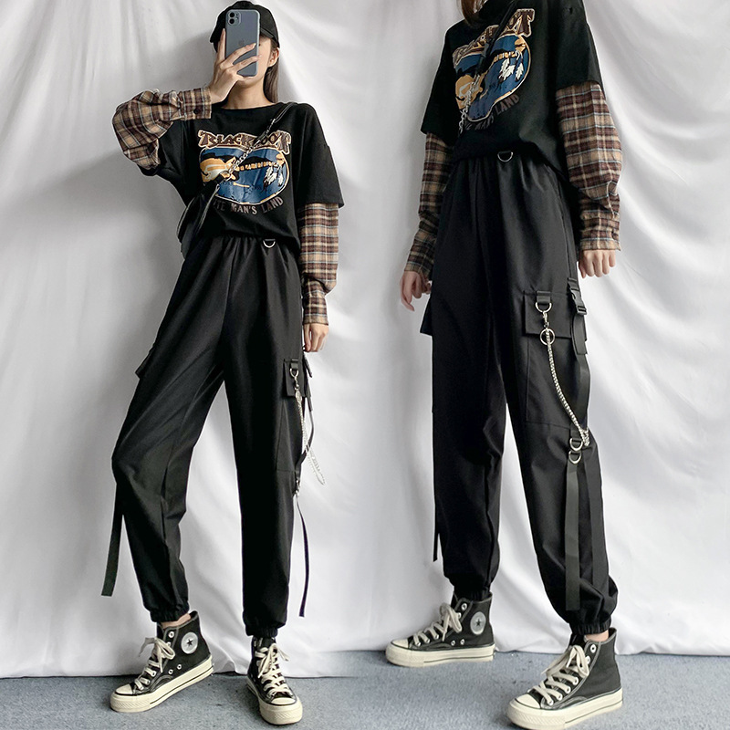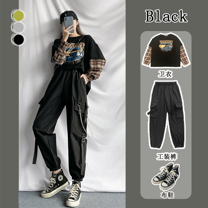 薄款工装裤女宽松bf春秋季运动新款高腰显瘦直筒束脚百搭裤子
