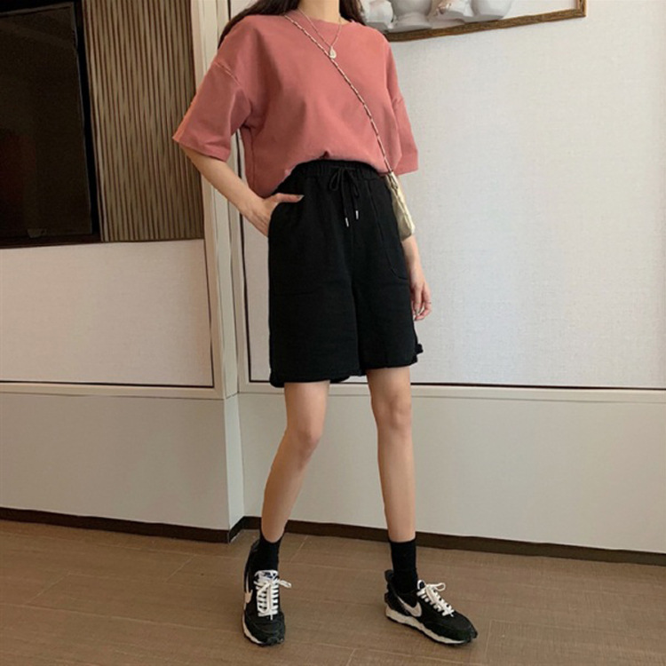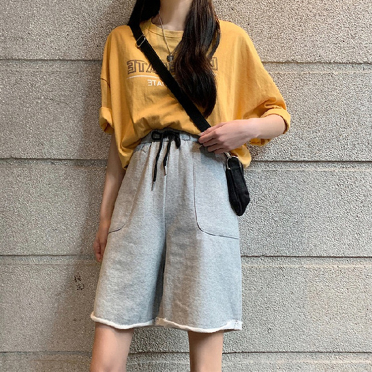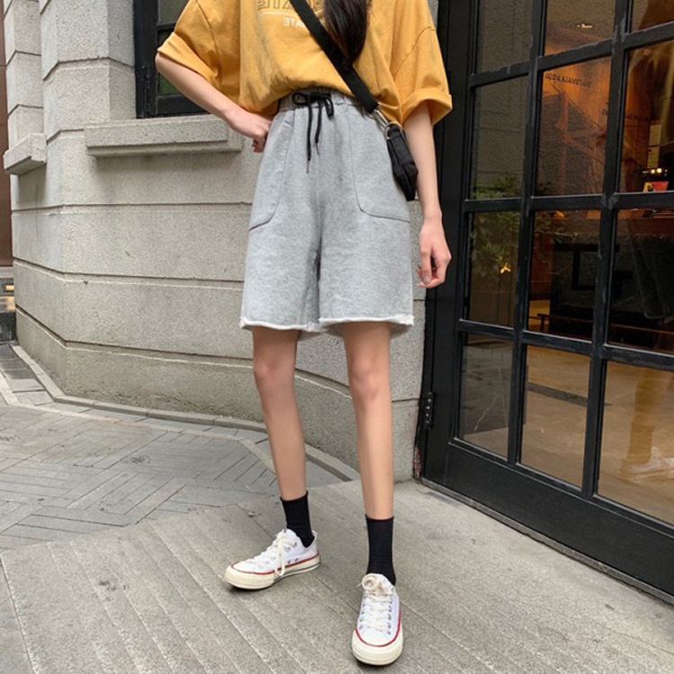 超火ins灰色休闲运动短裤女夏潮韩版宽松学生直筒阔腿裤五分裤子