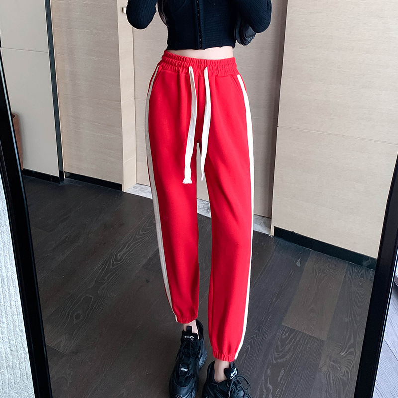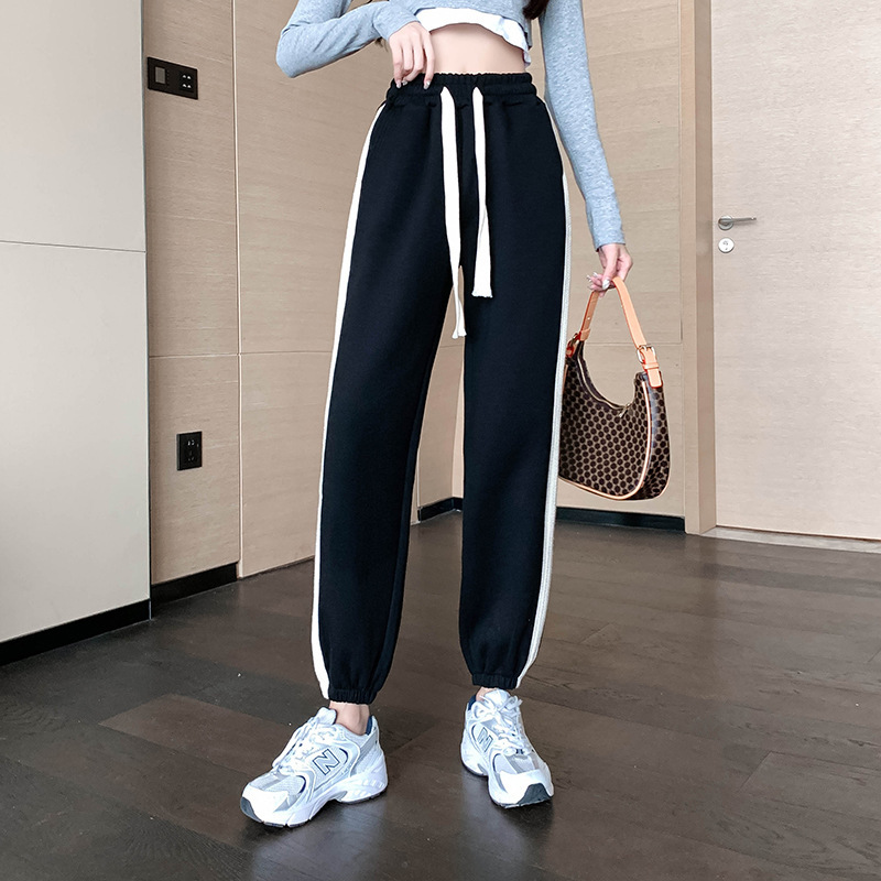 外贸韩版新款运动裤女春秋宽松束脚中腰显瘦休闲裤潮