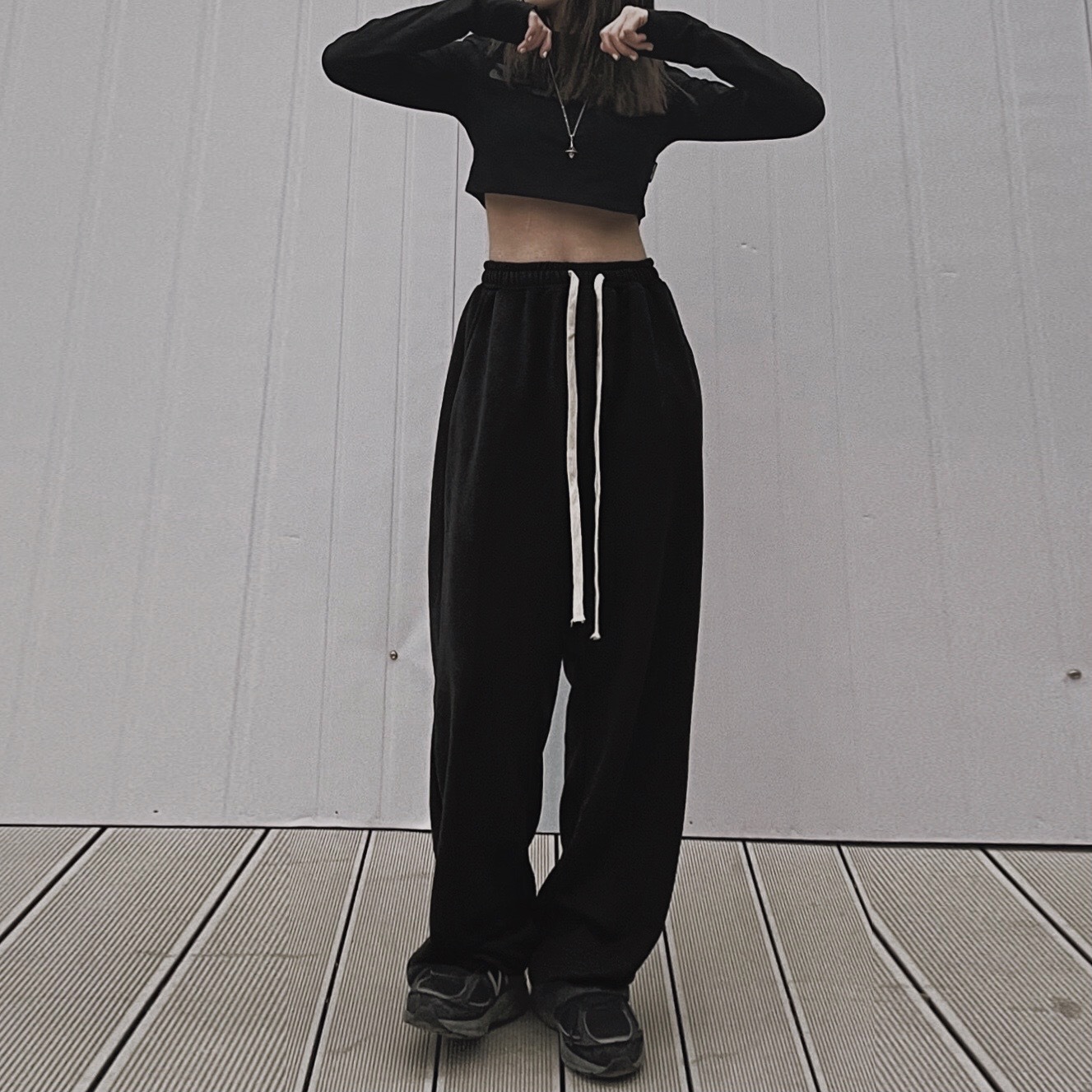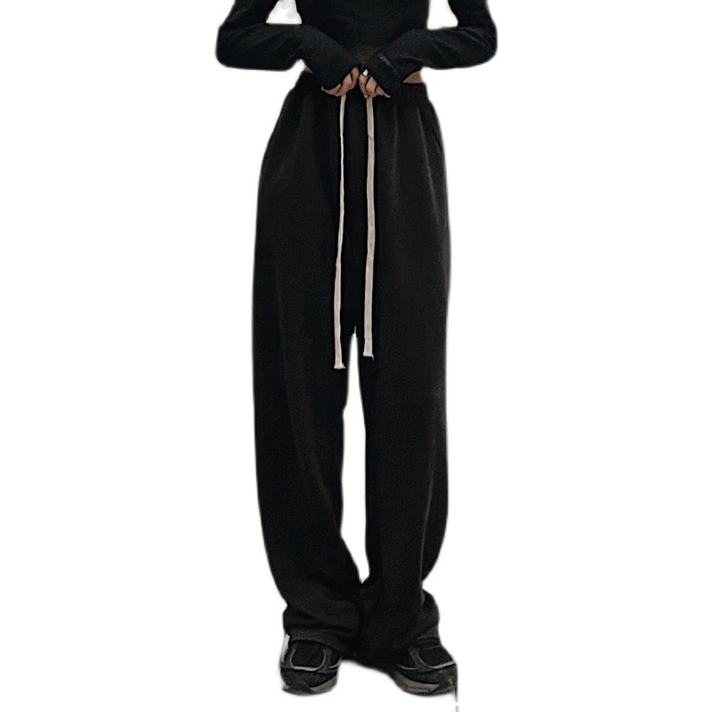 运动休闲裤女ins黑色直筒阔腿裤高腰垂感宽松长裤裤子潮
