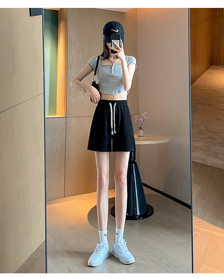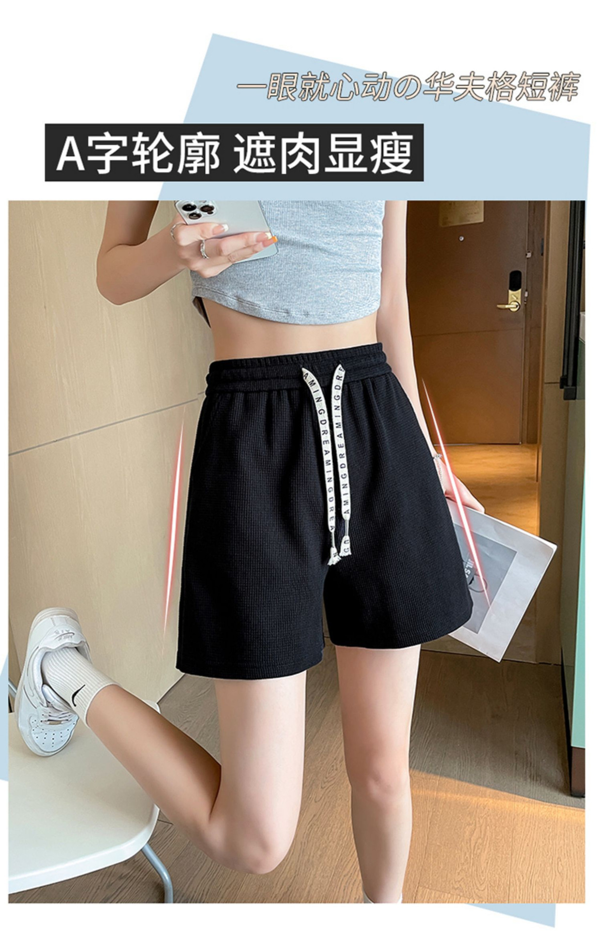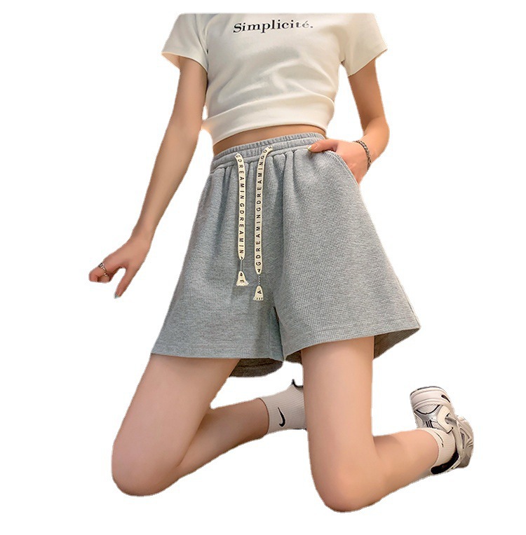华夫格大码短裤女松紧腰居家休闲宽松运动热裤高腰瑜伽三分裤夏季